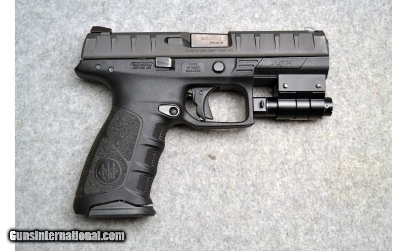 Description: The Beretta APX is a striker-fired 9mm pistol with a 4.25" barrel. This double-stack pistol comes with one 17-round magazine. The sights are a drift adjustable 3 dot. Comes fitted with a laser sight. Ambidextrous slide stop. 9mm Luger SOLD Barrels: 4 Weight: 2 lb Item Location: christiana |