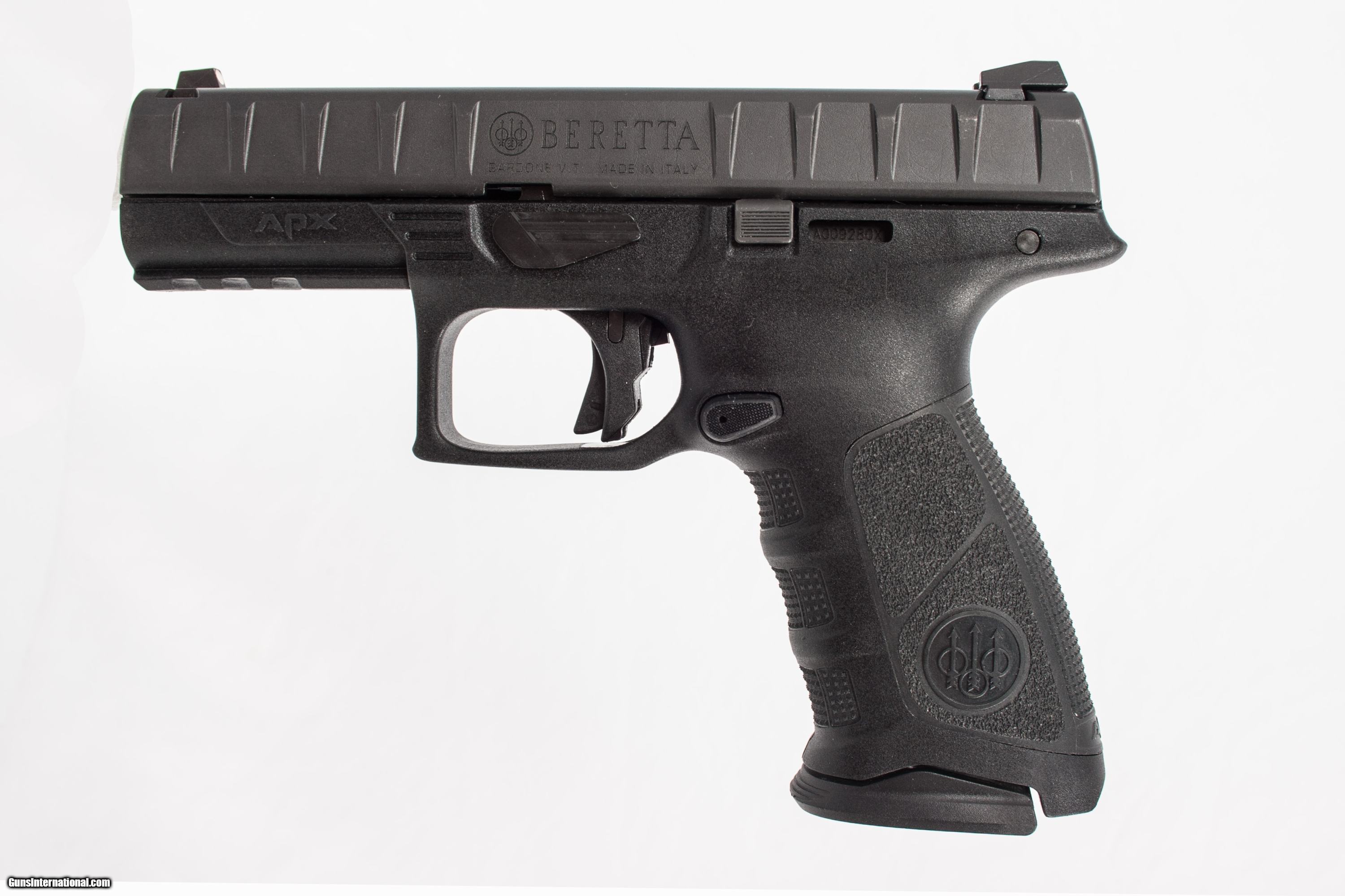BERETTA APX CHAMBERED IN 9 MM WITH A 4.25 INCH BARREL AND A CASE. THIS GUN IS IN EXCELLENT CONDITION AND IS COVERED BY DURY'S LIFETIME WARRANTY.