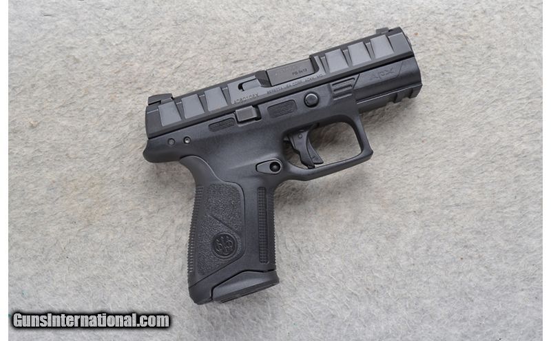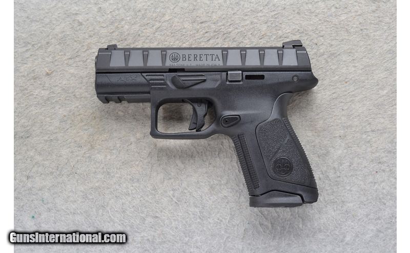 Description: This Beretta Model APX is a right hand semi-auto pistol in 9mm Cal. It has a 3.75 inch barrel with a front and rear grip slide. A blade front sight and notch rear sight with 3 white sight dots. The textured black polymer grip has an interchangeable back strap. It has a lower accessory rail. 9mm Parabellum SOLD Chambers: 15 round magazine. Metal Condition: Excellent. Bore Condition: Excellent. Barrels: 3.75 inch barrel with a front and rear grip slide. Weight: 26 oz. Sights: Blade front. Notch rear. 3 white sight dots. Item Location: Richfield, WI |