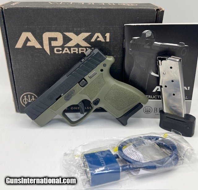 Description: Guns Listing ID: 507749 This is a preowned BERETTA APX A1 - 9MM LUGER in VERY GOOD condition. Comes as pictured with minor cosmetic wear. Comes with 2 magazines and cable lock in box. The APX A1 Carry encompasses the reliability and quality the APX family has become known for within the shooting communities. Years of extensive training and real-world use converge in a handgun designed and built for everyday carry and suited for anyone with personal defense on their mind. With a shorter and lighter trigger pull, the APX A1 Carry creates ease of use for a wide range of end-users. SPECIFICATIONS: Brand: Beretta USA Model: APX A1 Caliber: 9mm Luger Capacity: 8+1 Action: Striker Fire Frame Finish: OD Green Slide Finish: Black Barrel Finish: Blued Sight Configuration: White Dot Front / Blackout Rear Safety: Firing Pin / Trigger Barrel Length: 3\" Item# 1315384-SUE-RA SOLD Manufacturer: BERETTA Model: APX A1 Caliber Info: 9MM LUGER (9X19 PARA) Condition: Used - Non-Certified Barrels: 3.3 BARREL Action: STRIKER FIRED Finish: OD GREEN |