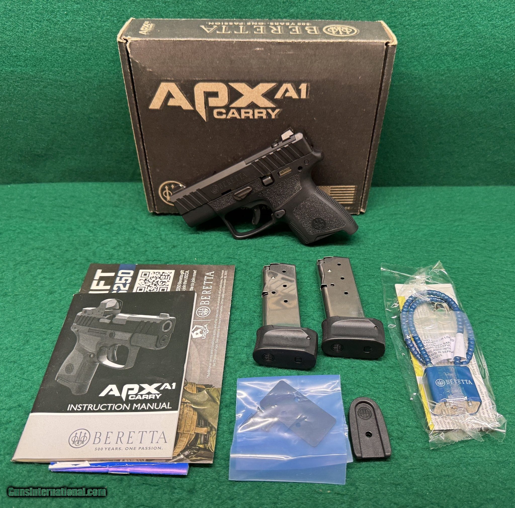 Description: Guns Listing ID: 564914 This listing is for a USED Beretta APX A1 Subcompact 9mm Black Finish Optic Ready 3\" BBL 8+1. This is a used gun, it has been fired and will have residue present. This Beretta APX A1 is chambered in 9mm, and it will hold 8 rounds in the magazine. This pistol comes with a 3 inch barrel. It comes equipped with a fixed front sight, a fixed rear sight, and it comes optics ready. There are a few light scratches around the slide. The action appears to be in good condition, and the finish appears to be in good condition, and the bore appears to be in good condition. This pistol comes with two 8 round extended magazines, an owner’s manual, a flush fitting base plate, an optics plate, a cable lock, and the cardboard box. This would be a great concealed carry pistol. ** DISCLAIMER** THIS FIREARM HAS NOT BEEN TEST FIRED*** SOLD Manufacturer: BERETTA Model: APX A1 Caliber Info: 9MM LUGER (9X19 PARA) Condition: Used - Non-Certified Barrels: 3.3" BARREL Action: STRIKER FIRED Finish: BLACK |