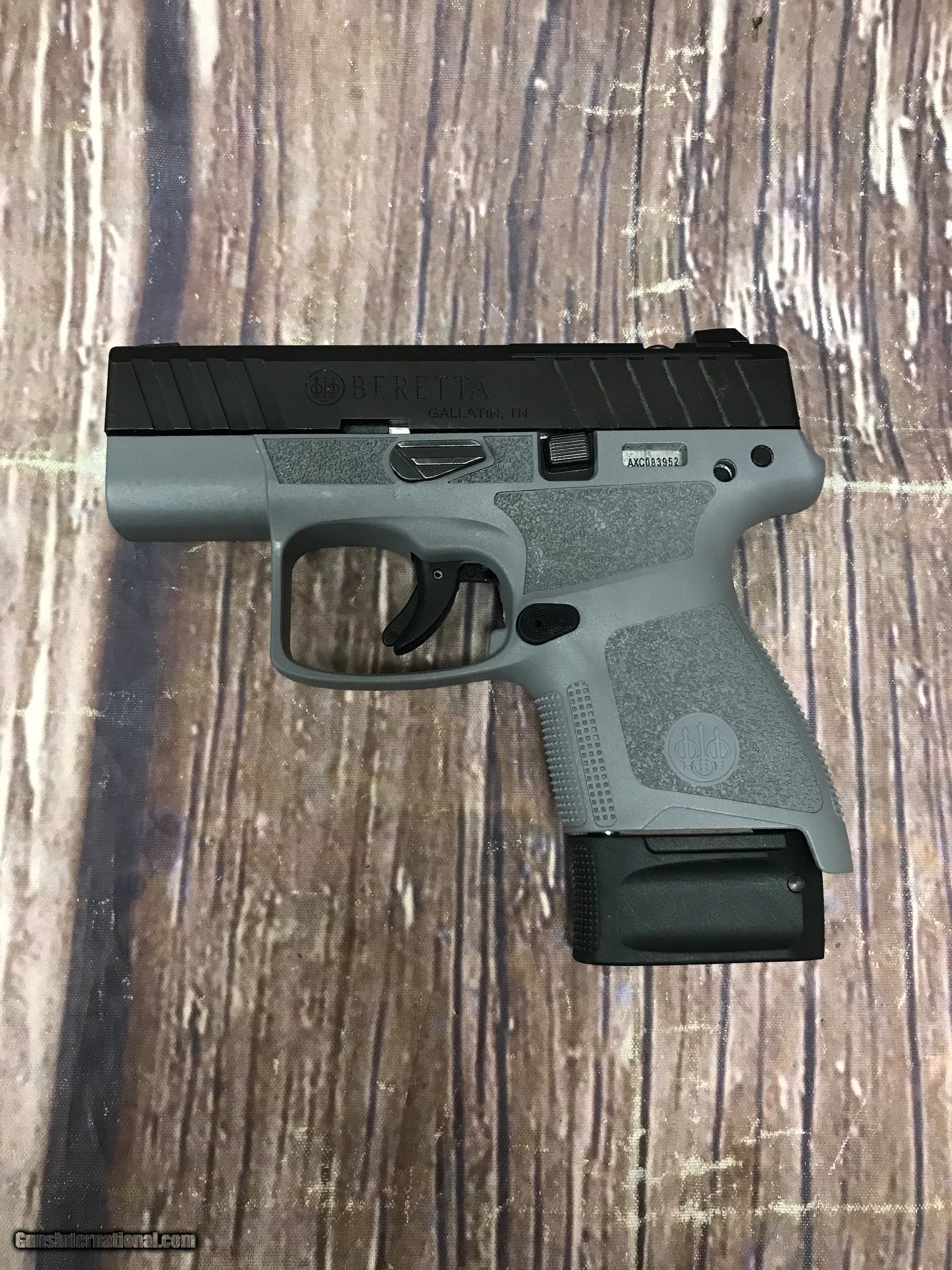 Description: Guns Listing ID: 1106549 According to our rating scale I would Rate this gun \"Good\". I have taken multiple pictures to show the condition of it. We want you to get the best impression of it. With the hopes when you get it, that it is better than what you thought. 100% working order. Some scratches and dings Comes with gun and 1 mag. The bore I would rate 6.5 out of 10. If I had to rate the firearm in condition I would say 7 out of 10.(Please see my pictures for a better detailed idea), Please see all Photos for a very detailed Description of condition. We rate firearms using these condition standards, for modern firearms. NEW-A gun given a grade of \"new\" looks just as it did when it left the factory and has never been sold at a retail store. PERFECT-A “perfect” gun is literally as good as new, although it may have been sold in a retail store. EXCELLENT-An “excellent” rating means the gun appears to be in perfect condition but may have had minor use. VERY GOOD-A “very good” firearm is perfect mechanically but may have minor cosmetic blemishes. GOOD-A rating of “good” indicates that the gun is in proper working condition but may show signs of wear. FAIR-A “fair” firearm may or may not be in safe working order. It has not been test fired, only visually inspected. It may need repair or maintenance. UNRATED-Unrated condition means this firearm has not been test fired, it may function perfectly or it may be in need of repair. Cosmetically it may be in very good to fair condition. You will need to look at the pictures and ask questions SOLD Manufacturer: BERETTA Model: APX A1 CARRY Caliber Info: 9MM LUGER (9X19 PARA) Condition: Used - Non-Certified Barrels: 3 BARREL Finish: GREY & BLACK |