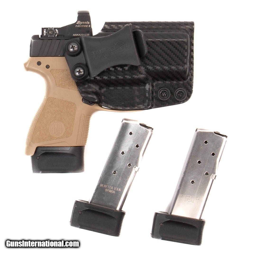 Description: Guns Listing ID: 493282 This Beretta APX A1 Carry features a Burris Fastfire 3 red dot. Three 8-round extended magazines and a right-handed IWB Tacticon Armament holster are included. Get the best bang for your buck when you get a Certified Used Firearm . When you see the Certified Used stamp on any of our firearms, you can be confident that you‚‚re getting exactly what you want – a gun only in very good to excellent condition and held to the highest quality standard. All Certified Used Guns come with a ‚‚no questions asked‚‚ return policy . PLUS, ALL CERTIFIED USED GUNS SHIP FR SOLD Manufacturer: BERETTA Model: APX A1 CARRY Caliber Info: 9MM LUGER (9x19 PARA) Condition: Used - Certified Barrels: 3.10 Action: SEMI AUTOMATIC Finish: black/fde Weight: 1.4 |