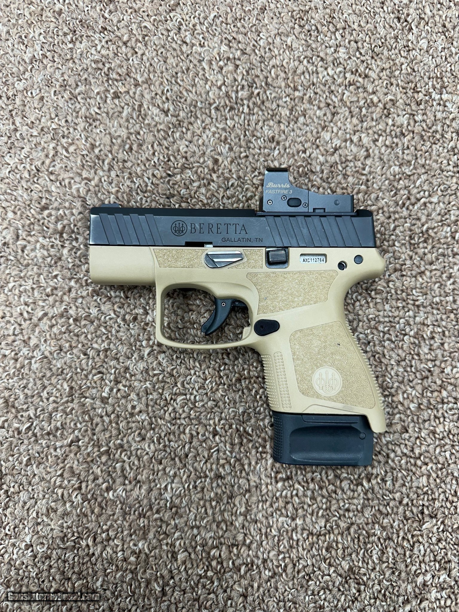 Description: Guns Listing ID: 559560 Beretta APX A1 Carry with Burris Fastfire 3 red dot optic. Firearm does show signs of wear with some scuffs and scratches. Optic is in functioning condition. SOLD Manufacturer: BERETTA Model: APX A1 CARRY Caliber Info: 9MM LUGER (9x19 PARA) Condition: Used - Non-Certified Barrels: 3 BARREL Action: SEMI AUTOMATIC Finish: blue |
