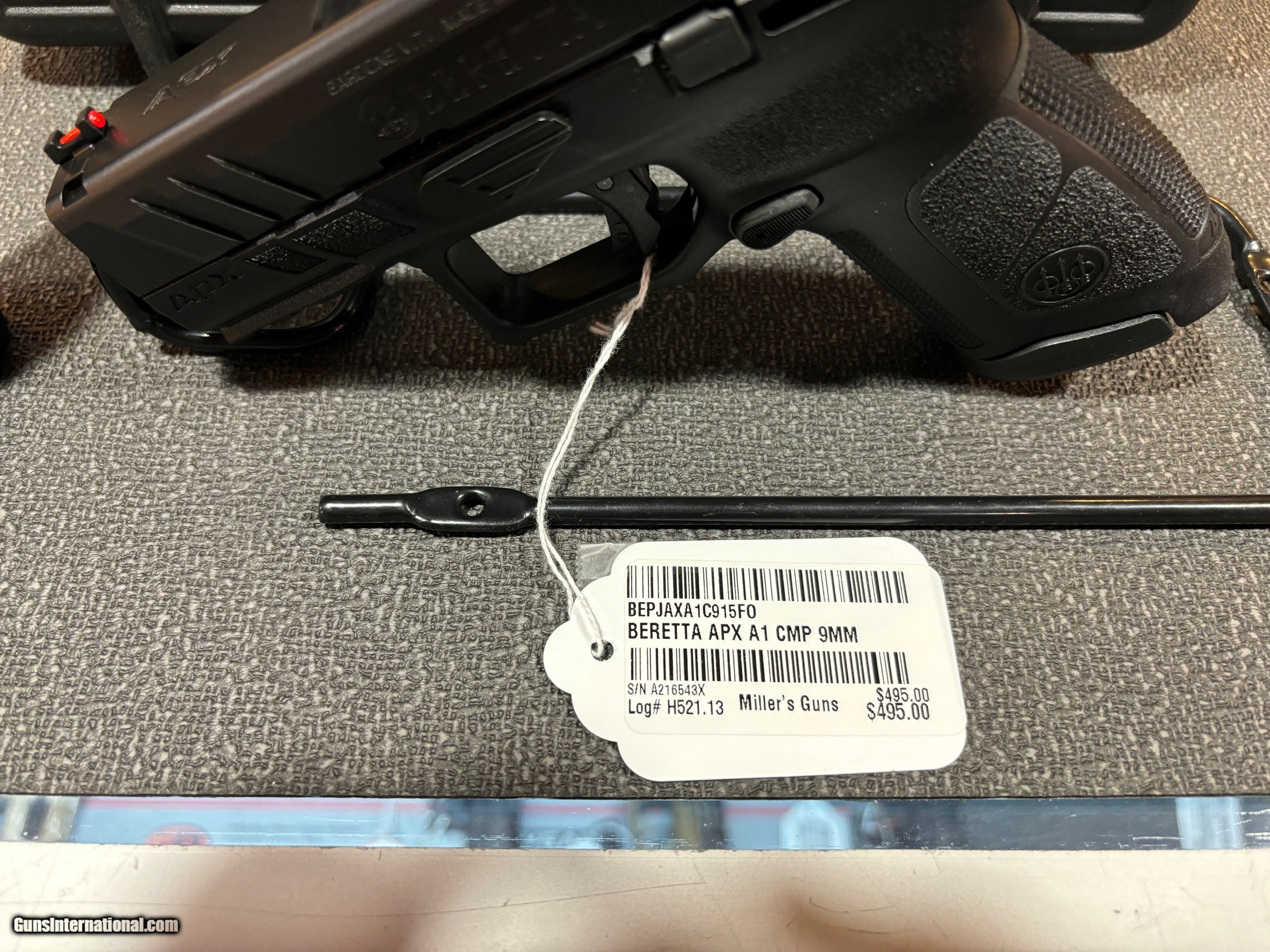 Description: Beretta APX A1 Compact 9mm Optics ready slide 15 round capacity (2) magazines included SOLD Handgun Caliber: 9x19mm Parabellum (9mm Luger, 9x19mm NATO) Manufacturer: Beretta Model: APX A1 Compact Serial Number: A216543X Condition: NEW |