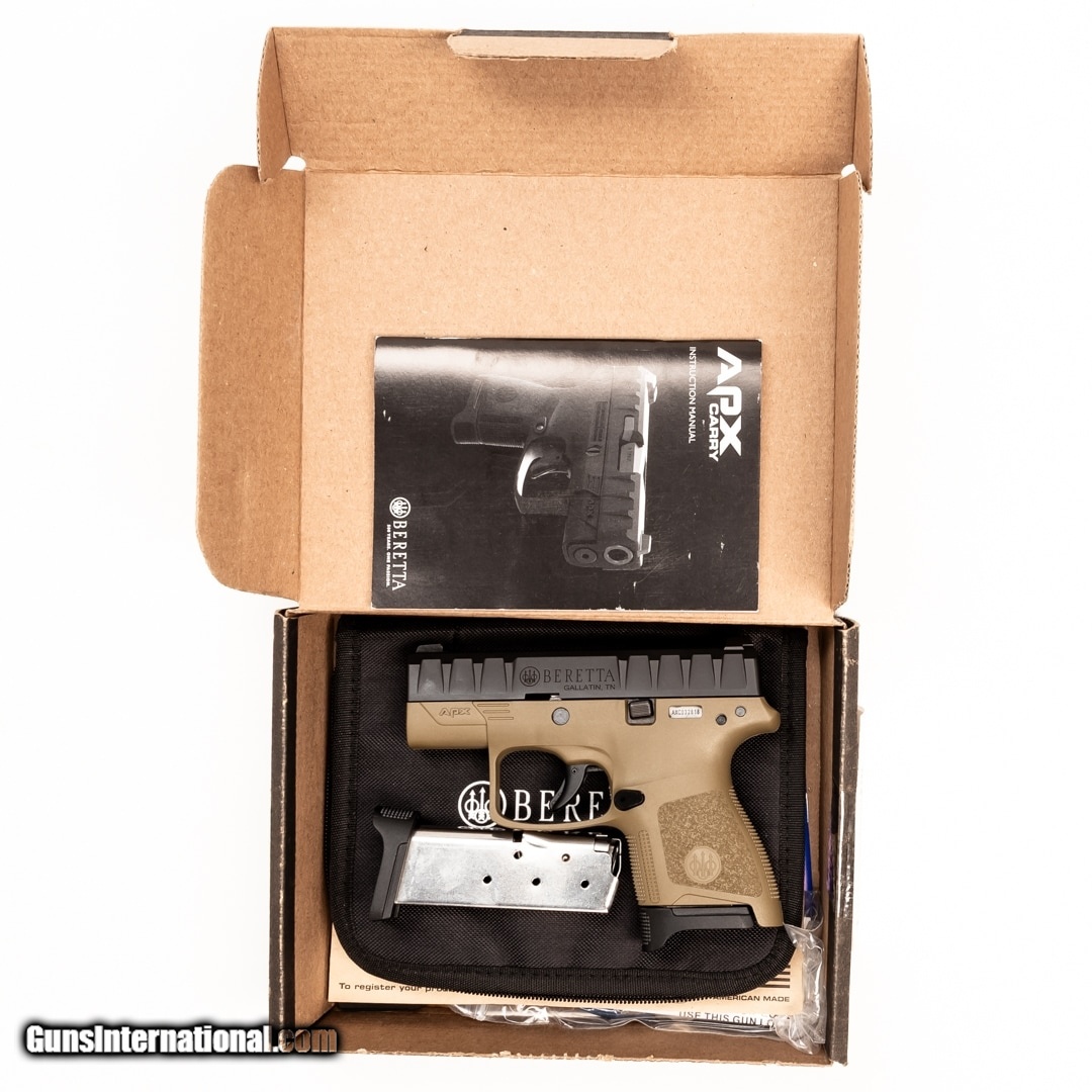 Description: Guns Listing ID: 888674 Referred to by Beretta as the ultimate striker-fired pistol, the APX Carry model is a compact handgun designed for personal protection. It‚‚s easy to conceal, reliable, and well-priced. If you‚‚re looking for a dependable sidearm, this is a great pick! This APX Carry includes the original box, soft case, owner‚‚s manual, and two 6-round magazines. Get the best bang for your buck when you get a Certified Used Firearm . When you see the Certified Used stamp on any of our firearms, you can be confident that you’re getting exactly what you want – a gun only in very good to excellent condition and held to the highest quality standard. All Certified Used Guns come with a ‘no questions asked’ return policy . PLUS, ALL CERTIFIED USED GUNS SHIP FR SOLD Manufacturer: BERETTA Model: APX CARRY Caliber Info: 9MM LUGER (9X19 PARA) Condition: Used - Non-Certified Barrels: not specified Finish: TWO-TONE |