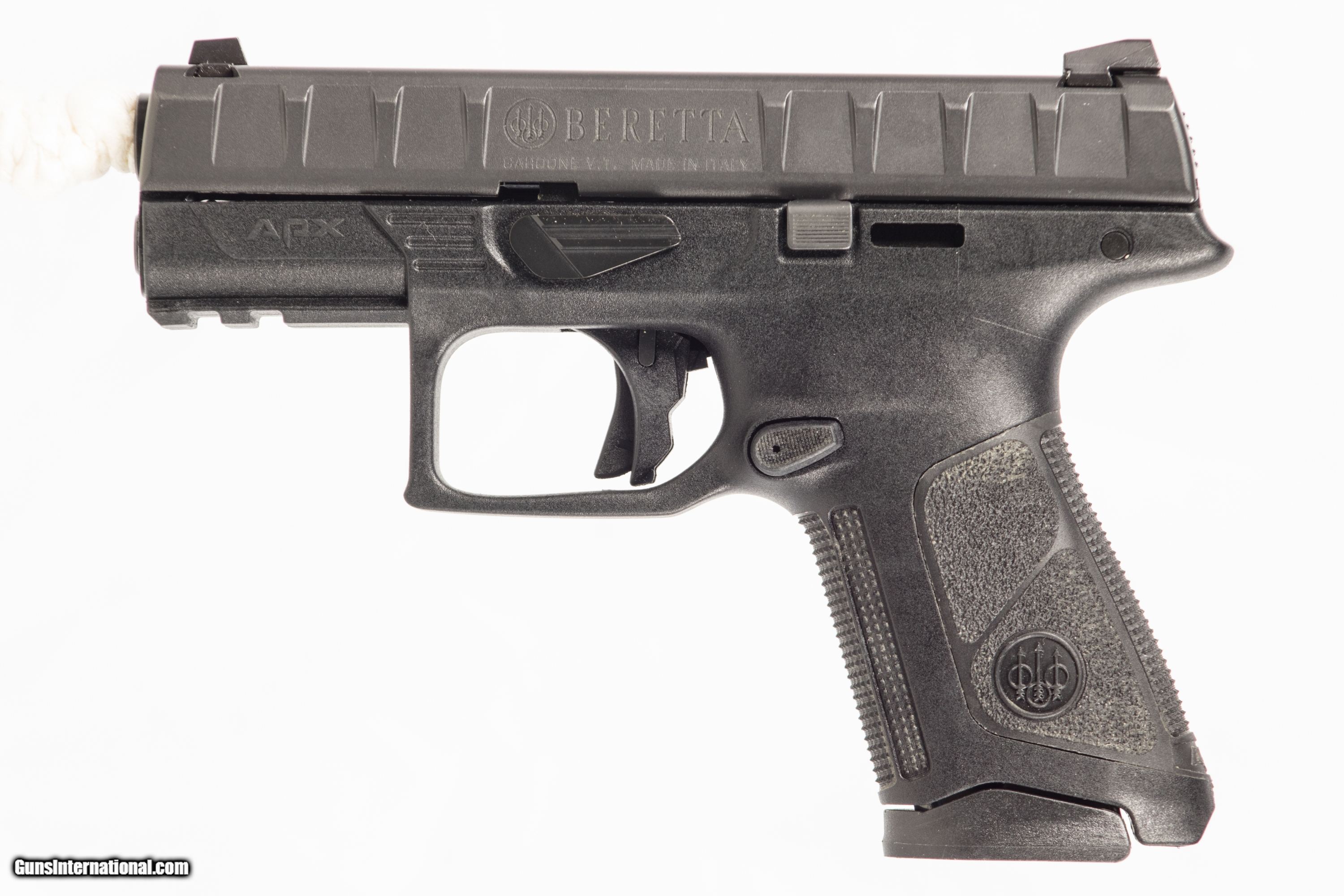 Beretta APX Centurion chambered in 9 mm with a 3 3/4 inch barrel bright & shiny bore case and extra magazine. This gun is in excellent condition and is covered by Dury's Lifetime Warranty.