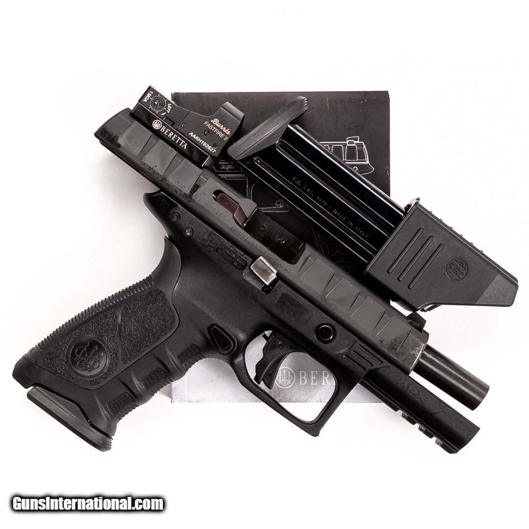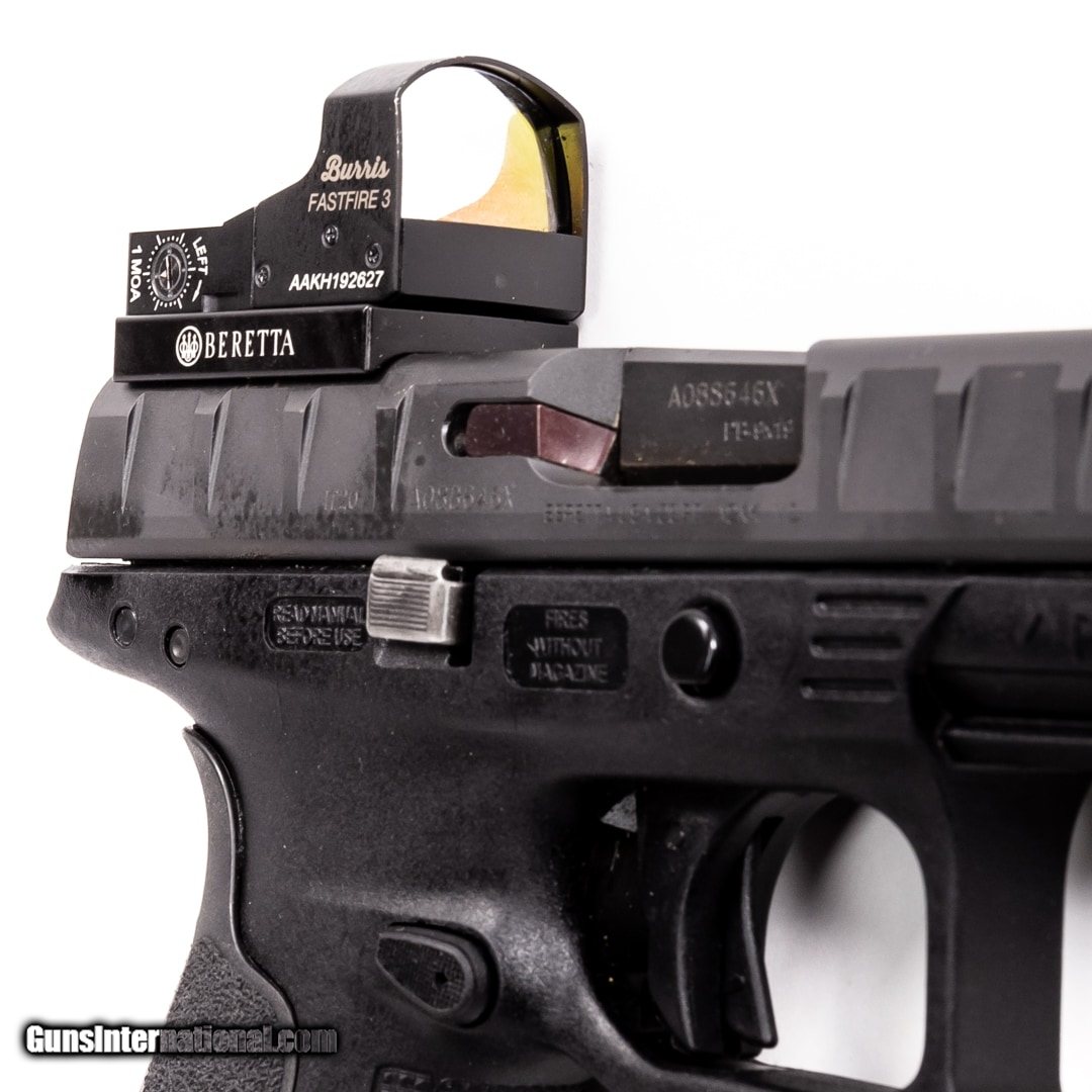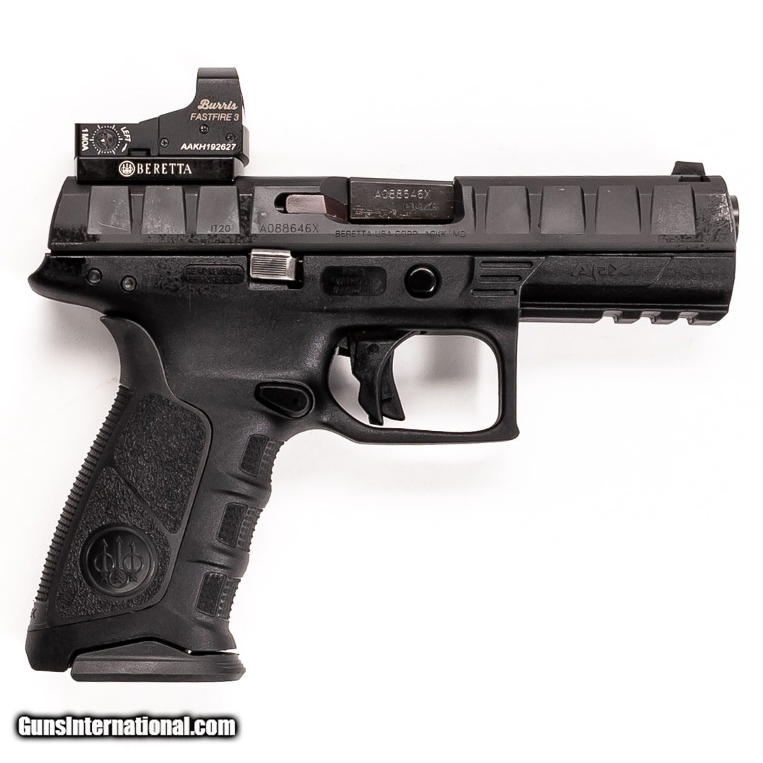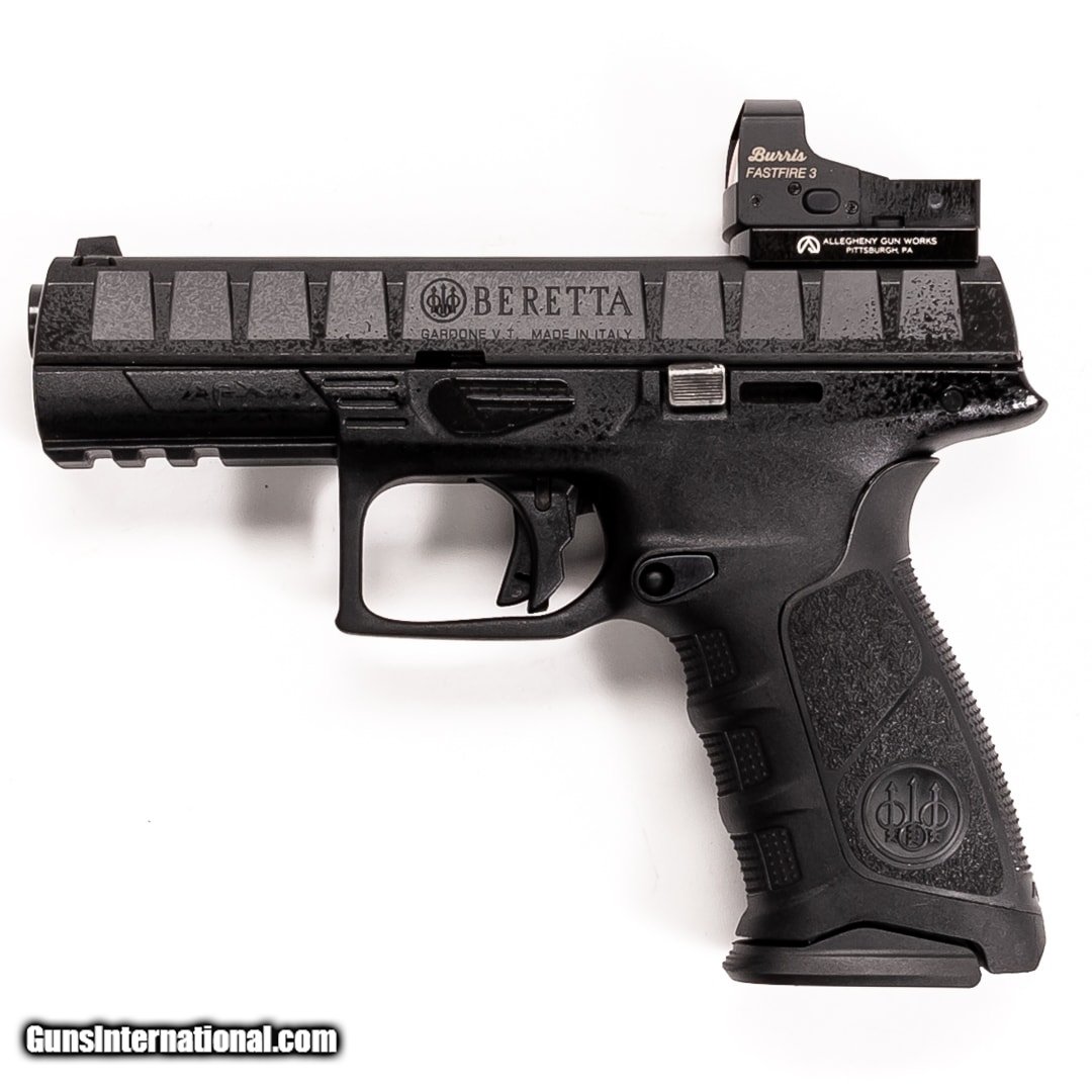 Description: Guns Listing ID: 300386 For sale is this Beretta APX handgun chambered in 9mm and well-suited for personal protection. Modification is made simple with a removable chassis frame, replaceable grip frame housings, and interchangeable back straps, while slide serrations contribute to ease of use, even in extreme conditions. Made in Italy, the APX also offers an easily reversed magazine release button for either right or left-handed use, in addition to an ambidextrous slide stop. This pistol has a Burris Fastfire 3 and is in very good condition, with some scuffs and marks at the right side of the muzzle. Purchase includes the original case, manual, and two 17-round magazines. SOLD Manufacturer: BERETTA Model: APX Caliber Info: 9MM LUGER (9X19 PARA) Condition: Used - Certified Barrels: 4.3 BARREL Finish: BLACK |