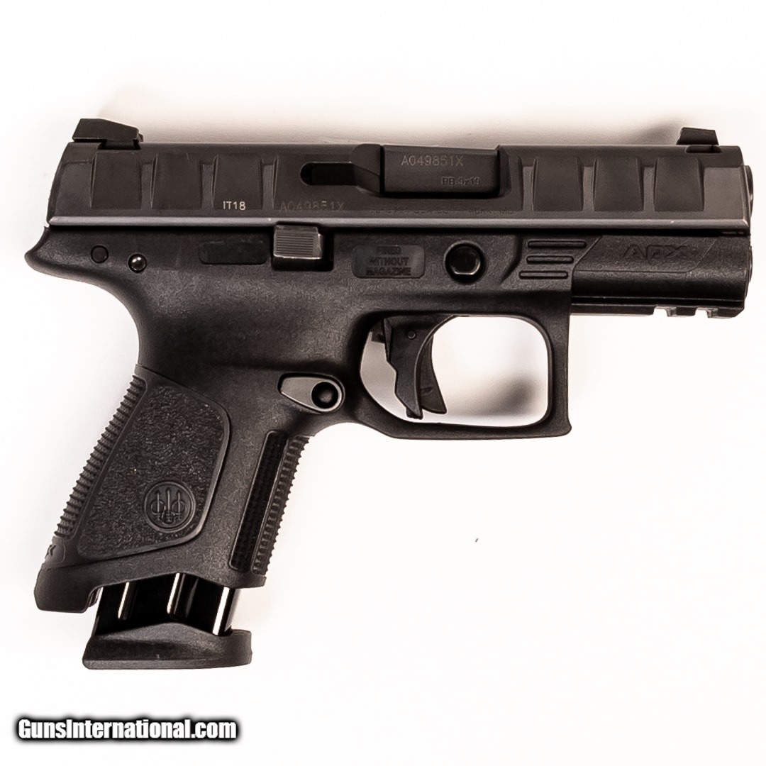 Description: Guns Listing ID: 502974 Each APX features aggressive full-length slide serrations making slide manipulations easy under any conditions. To accommodate right or left-handed use, the APX‚‚s magazine release button can be easily reversed, and the slide stop is ambidextrous. This handgun features two 13-round magazines, one 12-round magazine, and the orignal case with the manual SOLD Manufacturer: BERETTA Model: APX Caliber Info: 9MM LUGER Condition: Used - Certified Barrels: 4.3 BARREL Finish: BLACK |