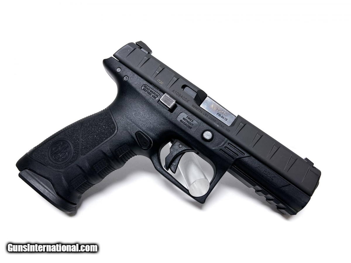 Description: Guns Listing ID: 653304 Beretta APX Full Size 9x19mm, 4.25\" Barrel, Black Finish, 3 Mags, 3 Holsters, Original Box SOLD Manufacturer: BERETTA Model: APX Caliber Info: 9X19MM Condition: Used - Non-Certified Barrels: 4.25 BARREL |