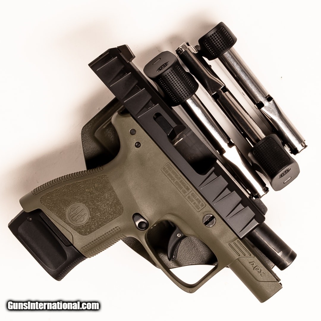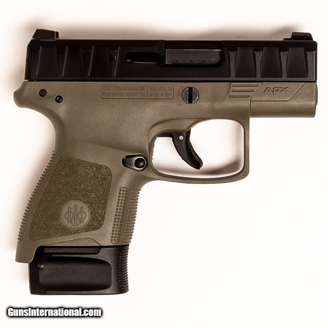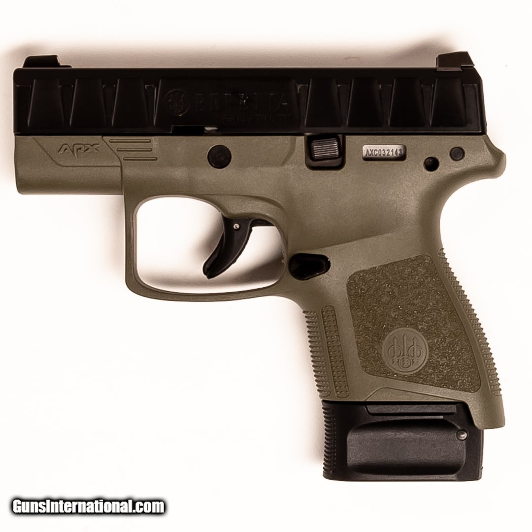 Description: Guns Listing ID: 628609 For sale is a Beretta APX handgun. Made to meet the demands of military and law enforcement, the APX is well-suited for personal protection. This APX includes the original soft case, four 7-round magazines, and a right-handed IWB Cya holster. SOLD Manufacturer: BERETTA Model: APX Caliber Info: 9MM LUGER (9X19 PARA) Condition: Used - Certified Barrels: 3.00 barrel Finish: BLACK & GREEN |