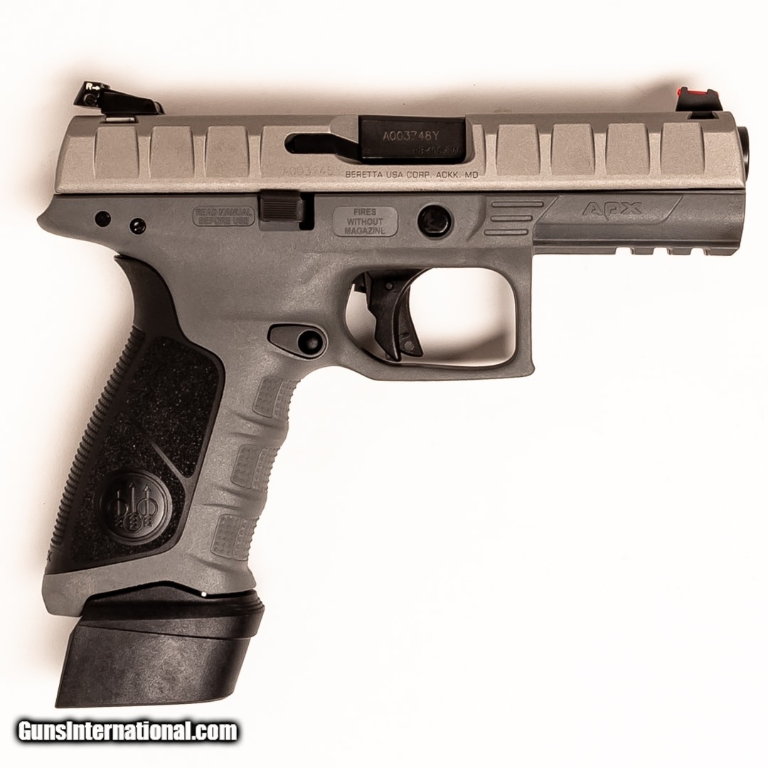 Description: Guns Listing ID: 632901 Designed specifically for military and law enforcement operators, the APX has been put through extensive testing and evaluation at the professional end user level. The result is a pistol that delivers superior performance in durability and reliability, ergonomics, trigger, and modularity. Utilizing a removable, serialized chassis frame, the APX can be easily modified with replaceable grip frame housings and is simple to disassemble and maintain. Each APX features aggressive full-length slide serrations making slide manipulations easy under any conditions. To accommodate right or left-handed use, the APX’s magazine release button can be easily reversed, and the slide stop is ambidextrous. This handgun features two 10-round magazine, three 15-ound magazines, two 17-round magazines, an LPA fiber optic sight, adjustable sights, a custom cerakote, and extra recoil springs. SOLD Manufacturer: BERETTA Model: APX Caliber Info: .40 S&W Condition: Used - Certified Barrels: 4 barrel Finish: BLACK AND GRAY |