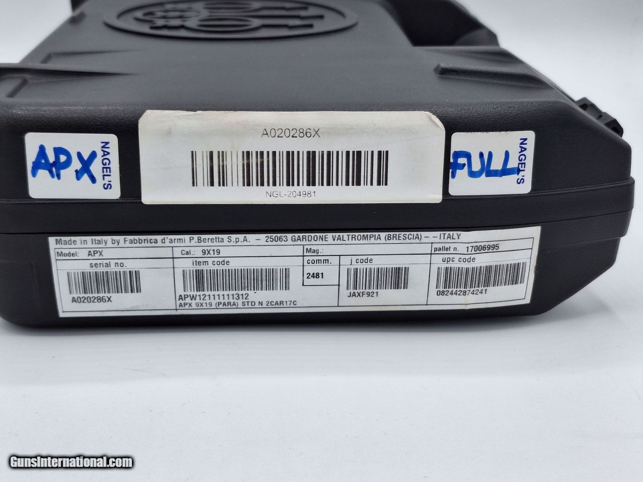 Description: Guns Listing ID: 855168 Beretta APX Full-Size 9MM Pistol, One 17 Rounds Magazine, Barrel Length 4.25\", User Manual, In Original Case. INV#1215292/UUM/DO SOLD Manufacturer: BERETTA Model: APX Caliber Info: 9MM LUGER (9X19 PARA) Condition: Used - Non-Certified Barrels: 4.25 BARREL Finish: BLACK |
