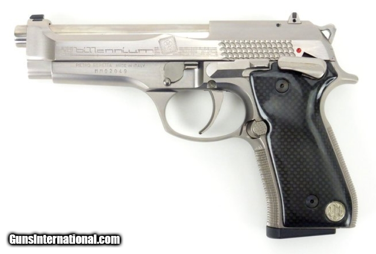 Description: " Beretta Billennium 9mm Para caliber pistol. Rare one of 2000 Limited Edition. All steel model with single action trigger, frame mounted safety, checkered grip frame, and carbon fiber grips. A beautiful and desirable piece in excellent condition. SOLD |