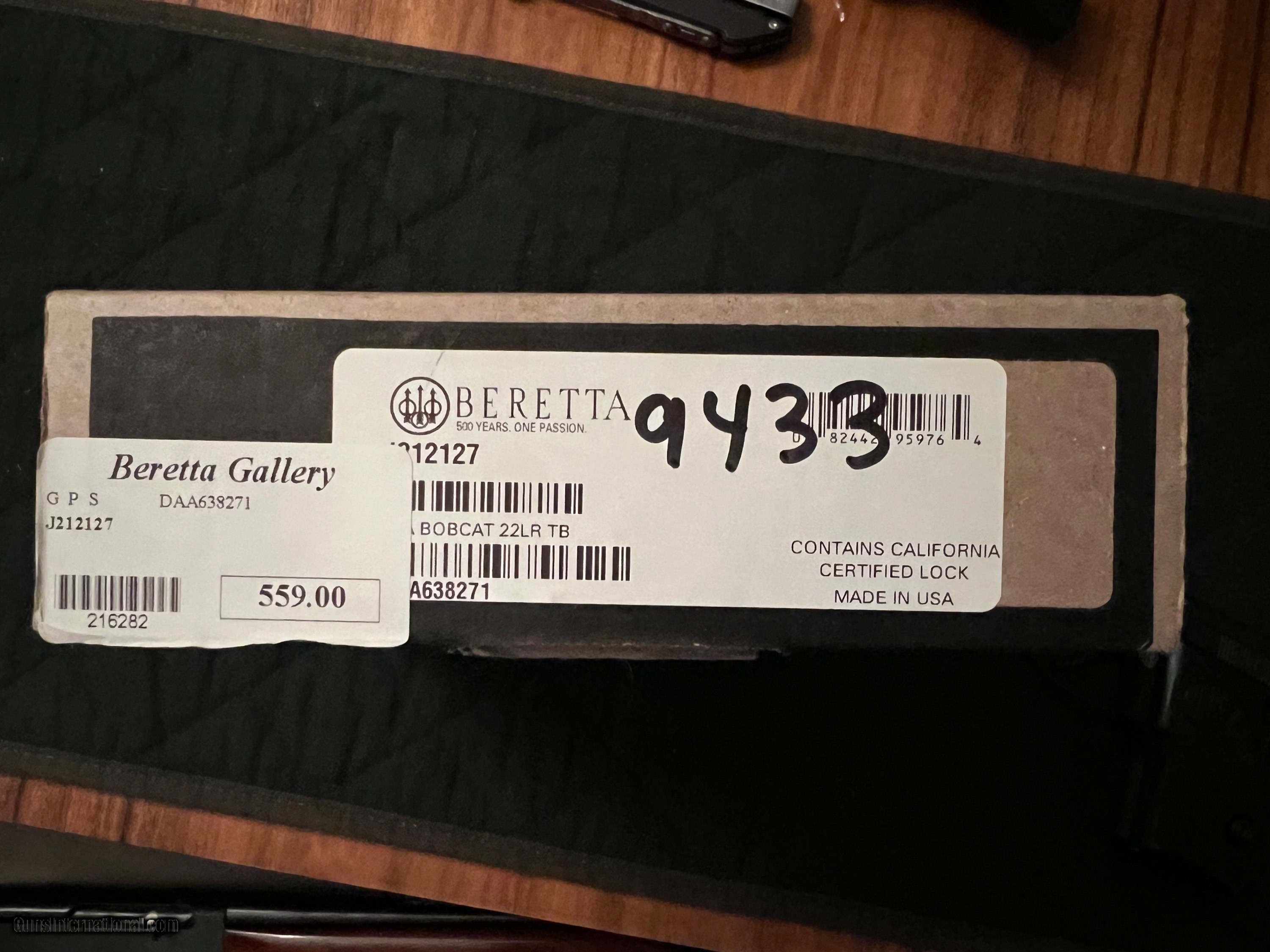 Beretta Bobcat .22lR Pistol as New with Box and Papers- Free shipping Priced to Sell