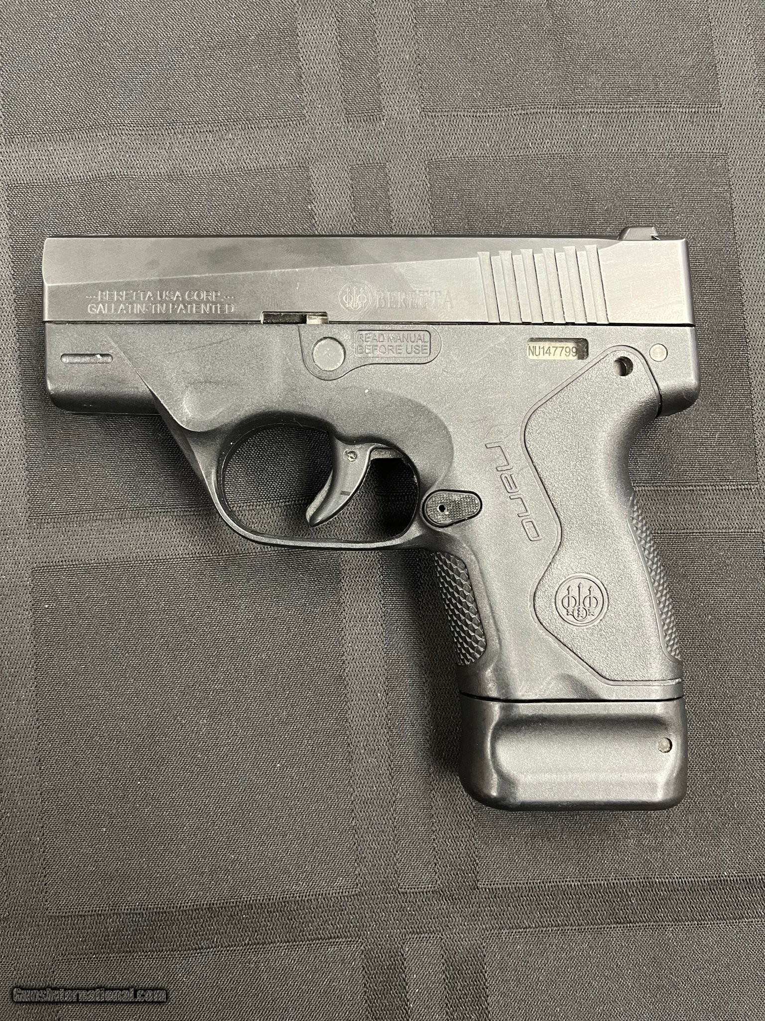 Description: Guns Listing ID: 609048 Beretta bu9 nano in excellent condition with original box as pictured. Manufacturer: BERETTA Model: BU9 NANO Caliber Info: 9MM LUGER (9x19 PARA) Condition: Used - Non-Certified Barrels: 3" BARREL Action: SEMI AUTOMATIC Finish: black blued Price: $299.99 Contact Seller |