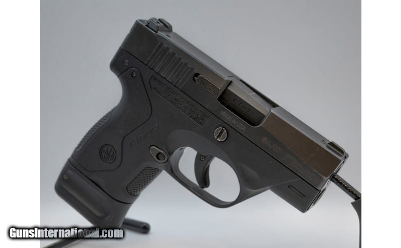 Description: The Beretta® Nano® is a slim, trim concealed carry Semi-Auto Pistol that's comfortable to have within reach all day, though large enough to get a solid hold on for accurate, controlled shooting. A modular design based on a serialized sub-frame or chassis fits into the polymer frame that can be modified with different grip-frames and accessories such as laser sights to accommodate individual shooters' preference. The Nano operates with tilt-barrel, recoil-operated system that returns the slide with a double recoil spring. The safety-type trigger has a smooth pull. The magazine release comes on the left side and is readily reversed to accommodate left-handed shooters. The Beretta Nano field strips down to 6 subassemblies (including the magazine) in just seconds, and reassembles just as fast. A striker deactivation button allows user to deactivate the internal striker mechanism prior to disassembly, without pulling the trigger. 3-dot sights are easily seen, and the rear sight is drift adjustable. The Beretta BU9 Nano Semi-Auto Pistol comes with an ultra-reliable single-stacked magazine. 9mm Luger SOLD Chambers: 9MM 8RD MAGIZNE Metal Condition: VERY GOOD Bore Condition: CLEAN AND BRIGHT Barrels: 3.07 inch barrel Triggers: Safety-type trigger Weight: 20 Oz. Sights: Three dot sights Item Location: Grandville, MI |