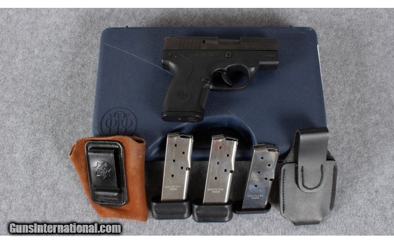 Description: Beretta BU9 Nano, 9MM semiautomatic handgun. Makes for a nice carry gun, comes with many extras. SOLD Manufacturer: NU087XXX Caliber Info: 9MM Metal Condition: Excellent Bore Condition: Excellent Barrels: 3 Triggers: DAO Stock Dimensions: Polymer Weight: 24 Oz Sights: 3 dot white sights Extras: Comes with 4 magazines 2 extended grips and two regular, a Bianchi holster a magazine holster (the leather is cracked) and a hard case. Item Location: East Hartford, CT |