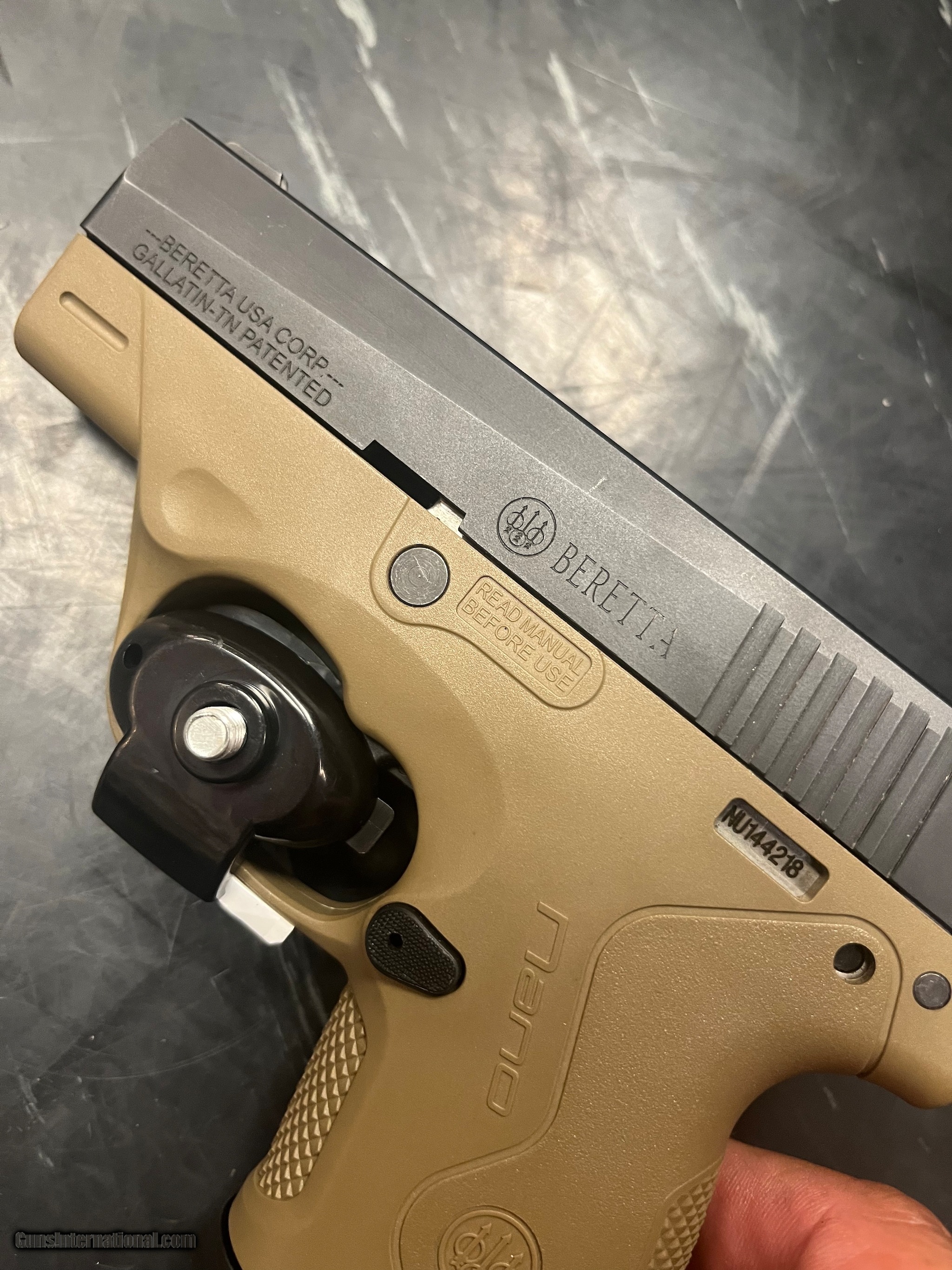 Description: Guns Listing ID: 560224 2 mags Hard case Total weight 19.8oz SOLD Manufacturer: BERETTA Model: BU9 NANO Caliber Info: 9MM LUGER (9X19 PARA) Condition: Used - Non-Certified Barrels: 3 BARREL Finish: FDE |