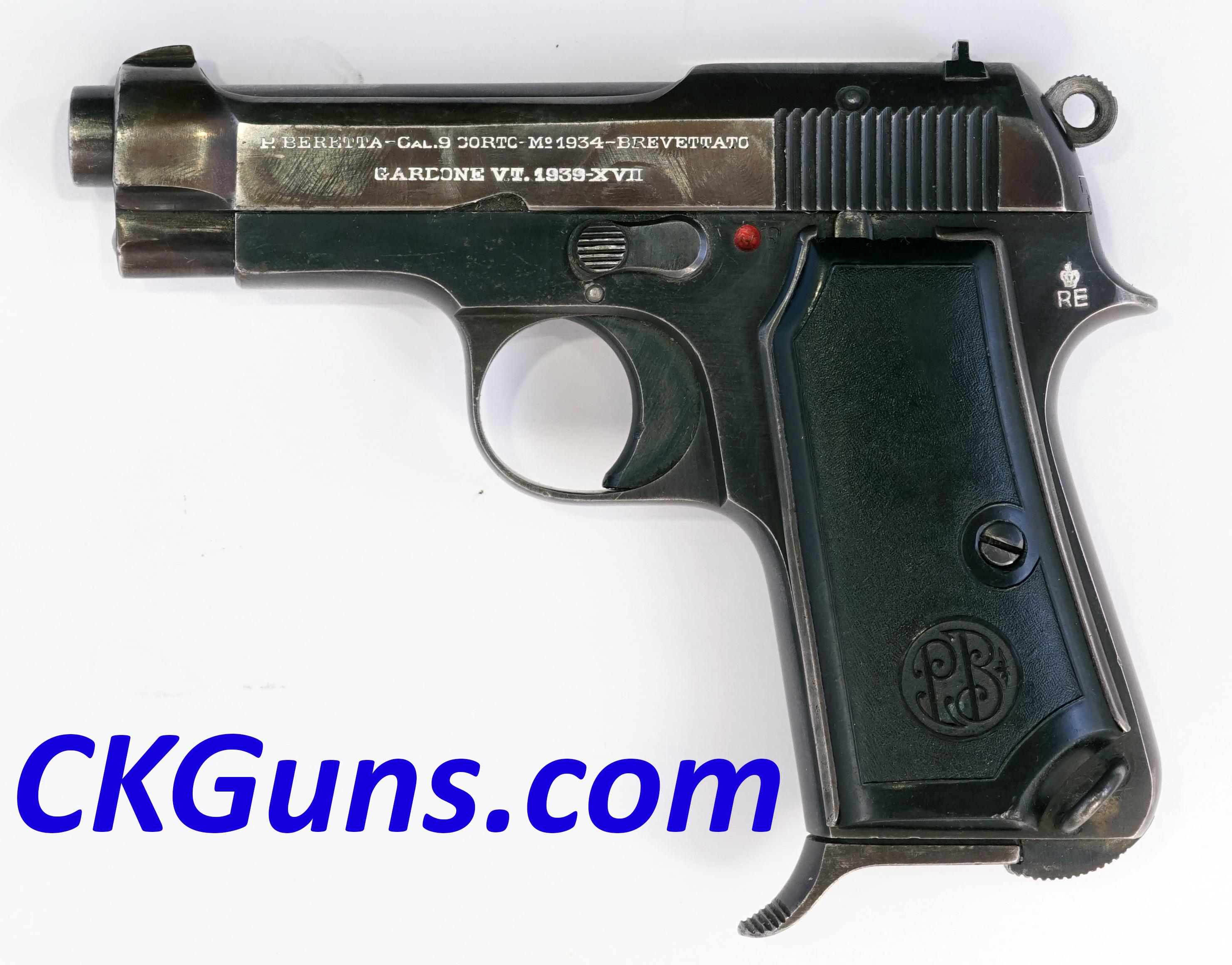 Description: Inv. 6302 Beretta Italian Army Mdl. 1934, Cal. .380 acp, Ser. 7852XX This is the standard two tone mdl. 1934. Because of a difference in the metal, the blued finish on the slide and barrel come out with a soft plum color. In this instance, because of some holster wear and slight use, the slide and barrel have lost about 20% of the plum color. The frame has retained about 95% of the original blue just showing some sharp edge silvering and some very slight toning of the grip straps. There are no pits, scratches or flakes anywhere. All parts match. The left rear of the frame is stamped Crown/RE, the right side is stamped Crown/FAG/39. The plastic grip panels are flawless and show no wear. The grip screws are not marred in anyway. The gun locks up tight and functions properly. The bore is like the rest the gun and shows very little use, it is mirror bright with very sharp rifling and just hint of frost. The gun comes with one proper finger grip magazine. While not minty, it is really in great condition and priced very modestly for the conservative collector.....$445. To purchase this firearm or if you want to request more information contact us at: Email ckguns at ymail (no spaces) Phone 201-512-0002 Cell 201-575-6838 FAX 201-215-4759 We accept most major credit cards. Prices shown are Discounted 3% for Cash or Check. The buyer must be familiar with all the laws governing the purchase and the ownership of firearms in their own city and state. The Yankee Armorer, Inc is not responsible for any failure to comply with or observe these laws. The Yankee Armorer, Inc will only ship after full payment and receipt of all required documents. Shipping: Add $35.00 for handguns, $45.00 for long guns. New Jersey buyers are subject to a 7% sales tax. The Yankee Armorer, Inc offers a 3 day inspection period with full refund upon return of intact firearm and in the original condition. The Yankee Armorer, Inc offers a no interest lay away program - 25% down; 25% in 30 days; 25% in 60 days; and full payment in 90 days. Any violation of this policy is subject to restocking and forfeiture of all payments. Any variation from this policy must be agreed to in advance. Unshipped Cancelled sales are subject to a 20% restocking fee. Be advised that all firearms sold by The Yankee Armorer, Inc. or the Gun Exchange, LLC (SELLER) are sold as collector’s items. They have not been fired or tested for safety and must be examined by a license gunsmith prior to use. By purchasing any item from the (SELLER), you are agreeing to hold the (SELLER) free from any damages or lawsuits of any nature. Any item left for transfer or storage will be charged to $25.00 per month, per item from the day of its receipt. Any variation from this policy must be agreed to in advance. Store hours 10:00 am to 5:00 pm Tuesday -Saturday. It's always best to call for appointment. Store 201-512-0002, cell 201-575-6838. SOLD Curio/Relic: Yes Manufacturer: Beretta Model: 1934 Serial Number: 7852XX Caliber Info: .380 ACP |