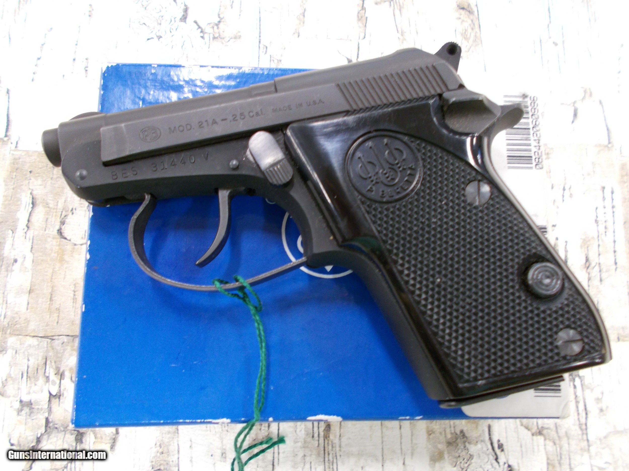 Description: HAVE A BERETTA MOD 21 MATTE 25ACP GUN HAS 96% ORIG FINISH 1 MAG IN ORIG BOX CALL TO ORDER AT 401 738 1889 SOLD |