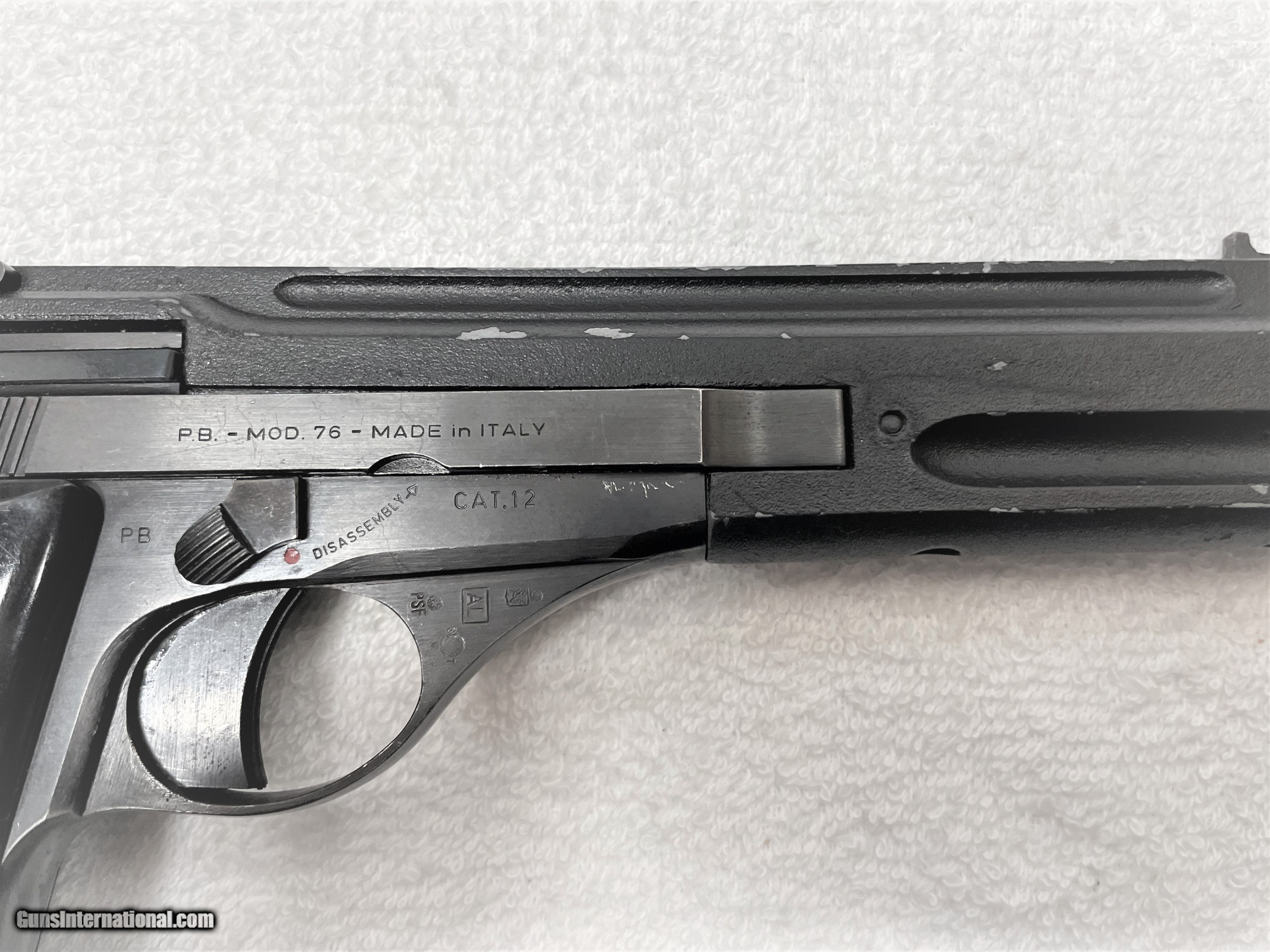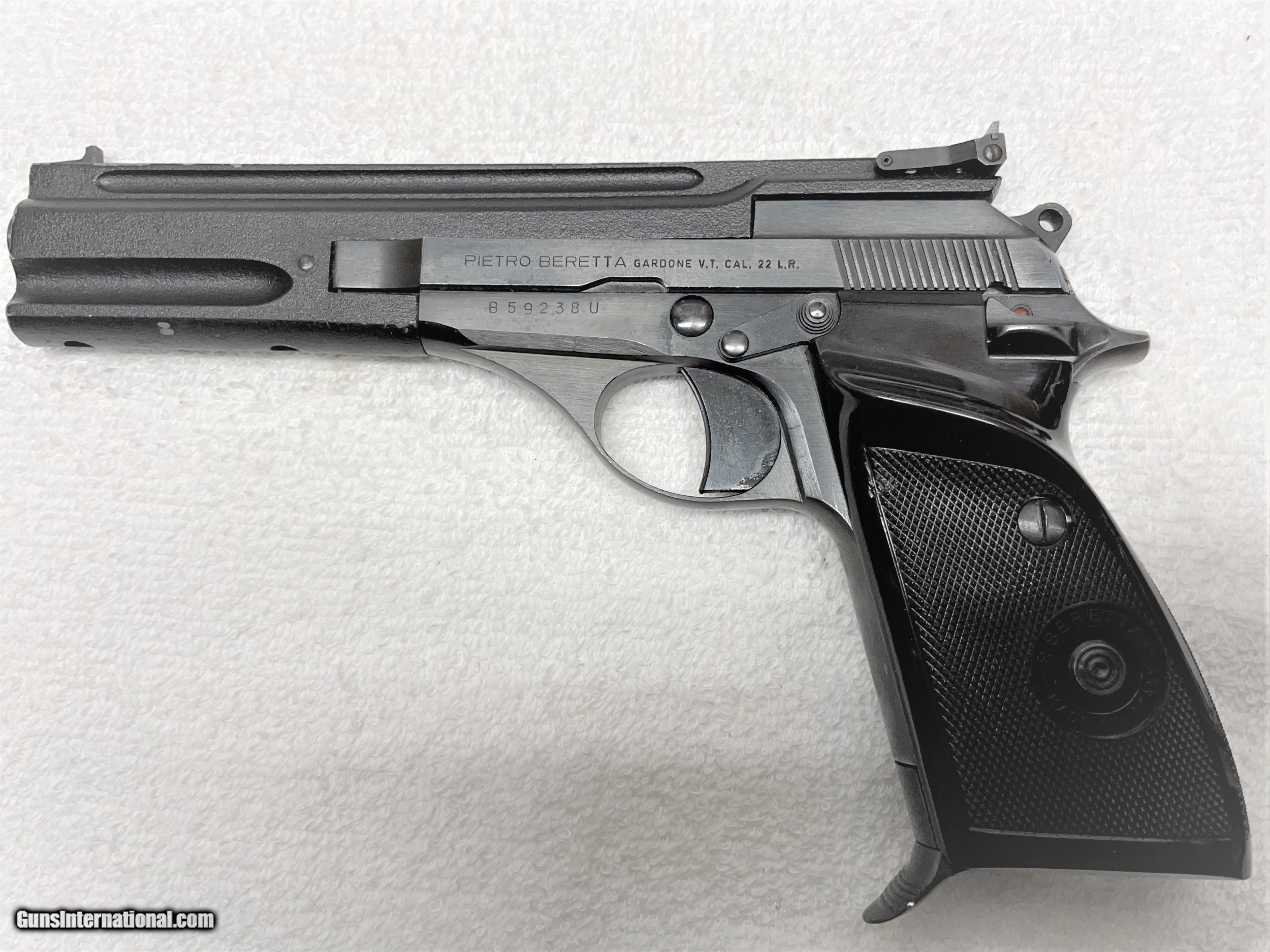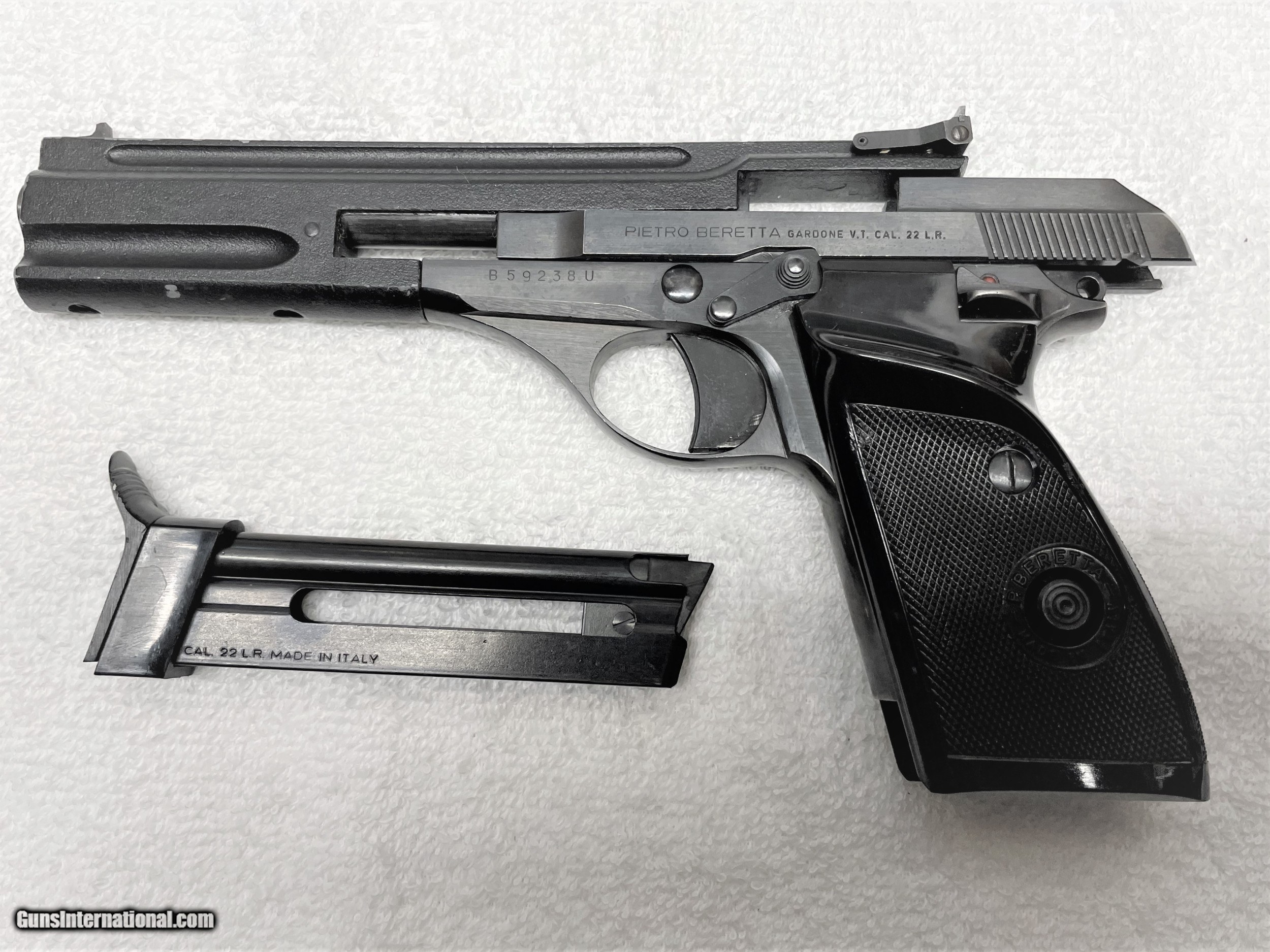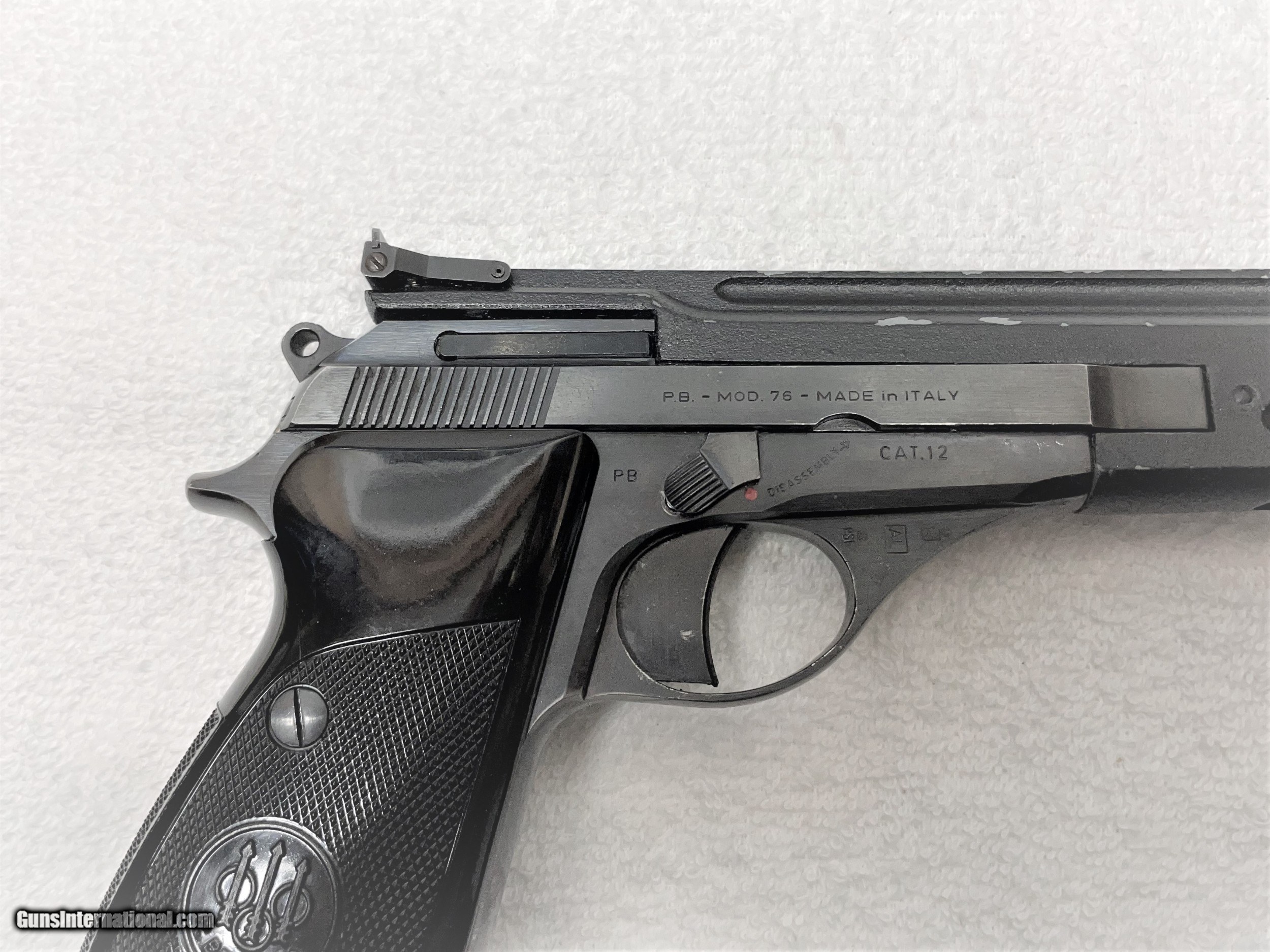Description: BERETTA M 76, 22LR, 6" barrel, Excel bore. 97% original condition. Thumb rest grip, Original mag. S/N B5923XU SOLD |