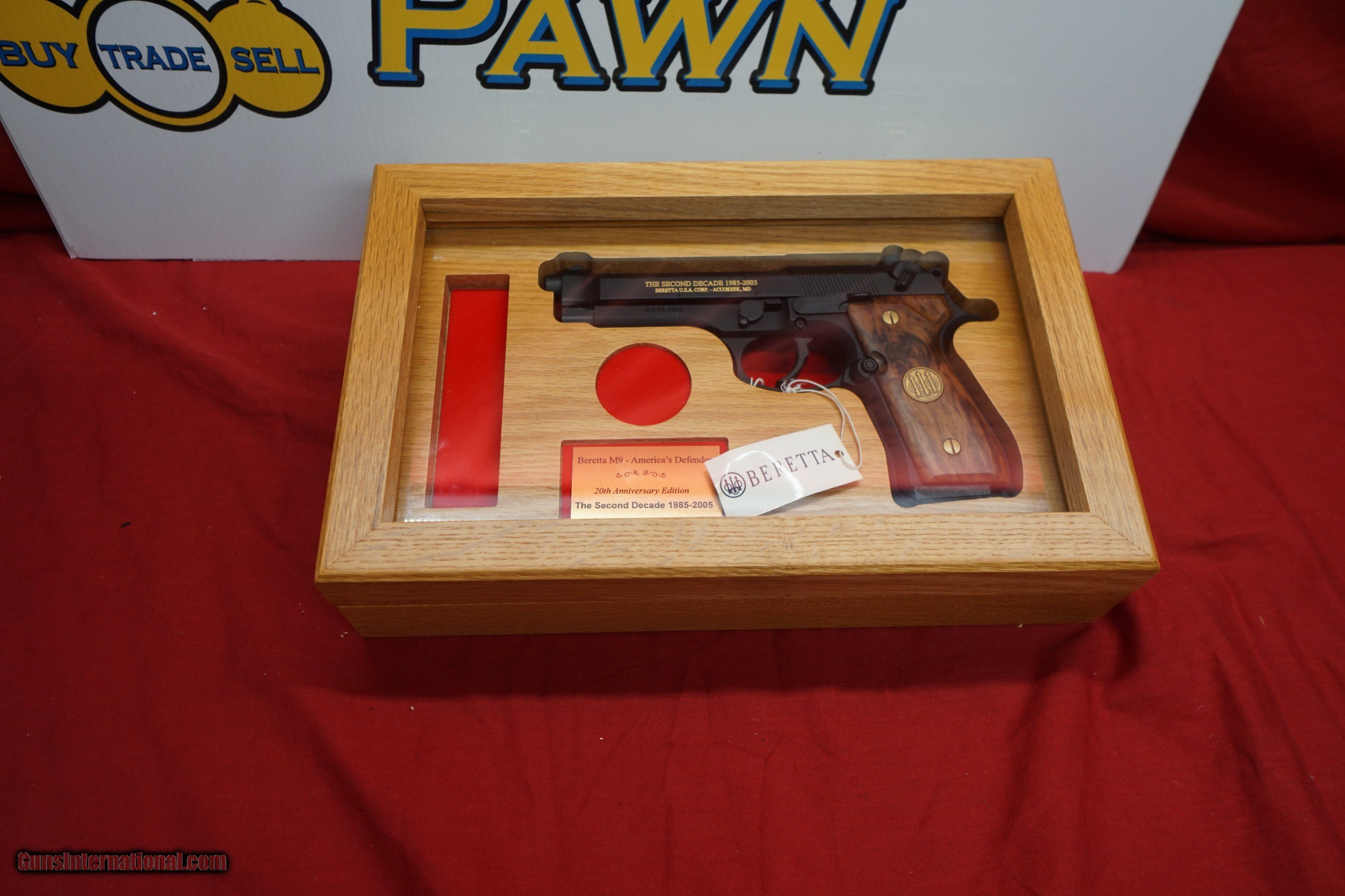 Description: Price reduced....Another great item from Gainesville Pawn! Up for sale is a Beretta M-9 Americas Defender Pistol Commemorative Pistol. This M-9 Pistol is 9mm. Beautiful wood grips, nicely inscribed in gold Americas defender on one side of the slide and the second decade on the other 1985-2005. This gun is new in its factory box with two magazines as well as comes with the factory wood presentation box with medallions. *Please be aware that all items are sold “AS IS”. Ask questions BEFORE placing a bid. Feel free to call me (352) 339-4780 or email us at Gainesvillepawngmail with ANY questions. We do not accept trades or offers through through Guns International We only entertain trades and offers through our store. $35 shipping and handling. Insurance extra. We only accept USPS money orders and major credit cards for payment. 3% convenience fee for credit cards. WE collect Florida state sales tax for in state sales. Please be aware that this item is for sale in our store as well as the occasional gun show so it may be sold there at any time. We will not ship the item until you have your dealer/receiving store email us a signed copy of their FFL to gainesvillepawngmail. If you choose the Buy It Now option please call me (352) 339-4780 to finish the transaction. SOLD Handgun Caliber: 9x19mm Parabellum (9mm Luger, 9x19mm NATO) Manufacturer: Beretta Model: M-9 2005 Serial Number: spec0440am Barrel Length: 5 in Condition: like new Metal Condition: like new Wood Condition: like new Bore Condition: like new |
