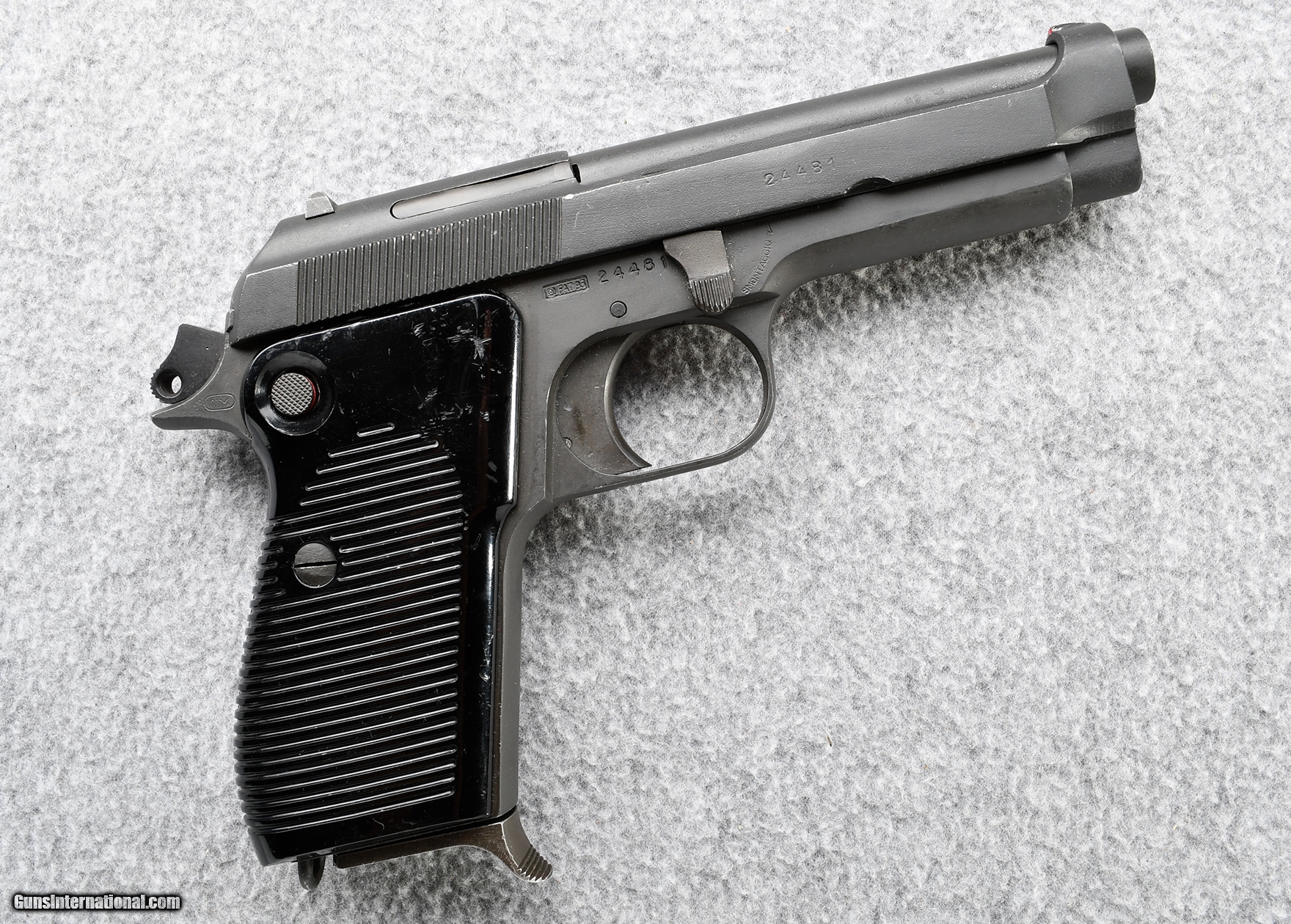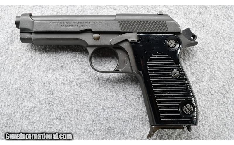 Description: Very good condition Beretta 1951 9mm with fixed sights, short recoil–operated, locked breech pistol, and an open-top slide, single action trigger. 9mm Luger SOLD Chambers: 9mm In an eight round detachable magazine Metal Condition: Very good Bore Condition: Very good Barrels: 4.5 Triggers: Single action Weight: 30 OZ Sights: "Fixed iron front blade, rear notch Item Location: Grand Junction, CO |