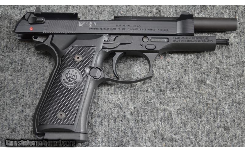 Description: Clone of a Beretta M9 chambered in .22 Long Rifle manufactured by Umarex under license from Beretta. Pistol bore and finish are in excellent condition. Action cycles well. Trigger is factory standard. Pistol comes with a single 10-round magazine and the original box. .22 Long Rifle SOLD Metal Condition: Excellent Bore Condition: Excellent Barrels: 5.25 Triggers: DA/SA Weight: 1.8 lbs. Sights: Iron sights Item Location: Gainesville, VA |