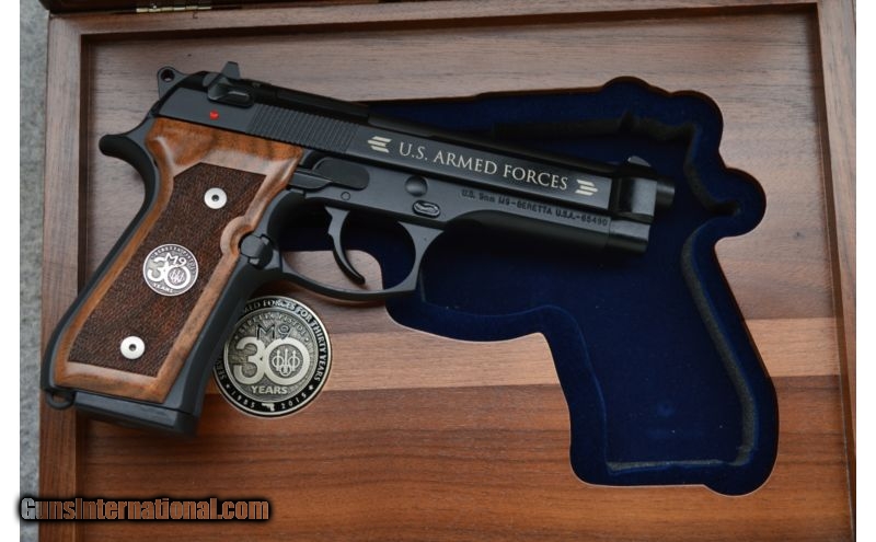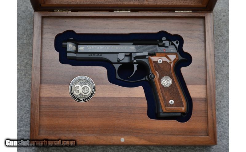Description: Excellent condition overall with a fitted display case and box. Commemorates 30 years of the M9, 1985 to 2015. SOLD Manufacturer: Circa: 2015 Caliber Info: 9mm Parabellum Metal Condition: Excellent Wood Condition: Excellent Bore Condition: Excellent Barrels: 5 Triggers: Double Action / Single Action Stock: Checkered Grips with Medallions Weight: 2 lbs. Sights: Fixed Open Sights Item Location: Hamburg, PA |