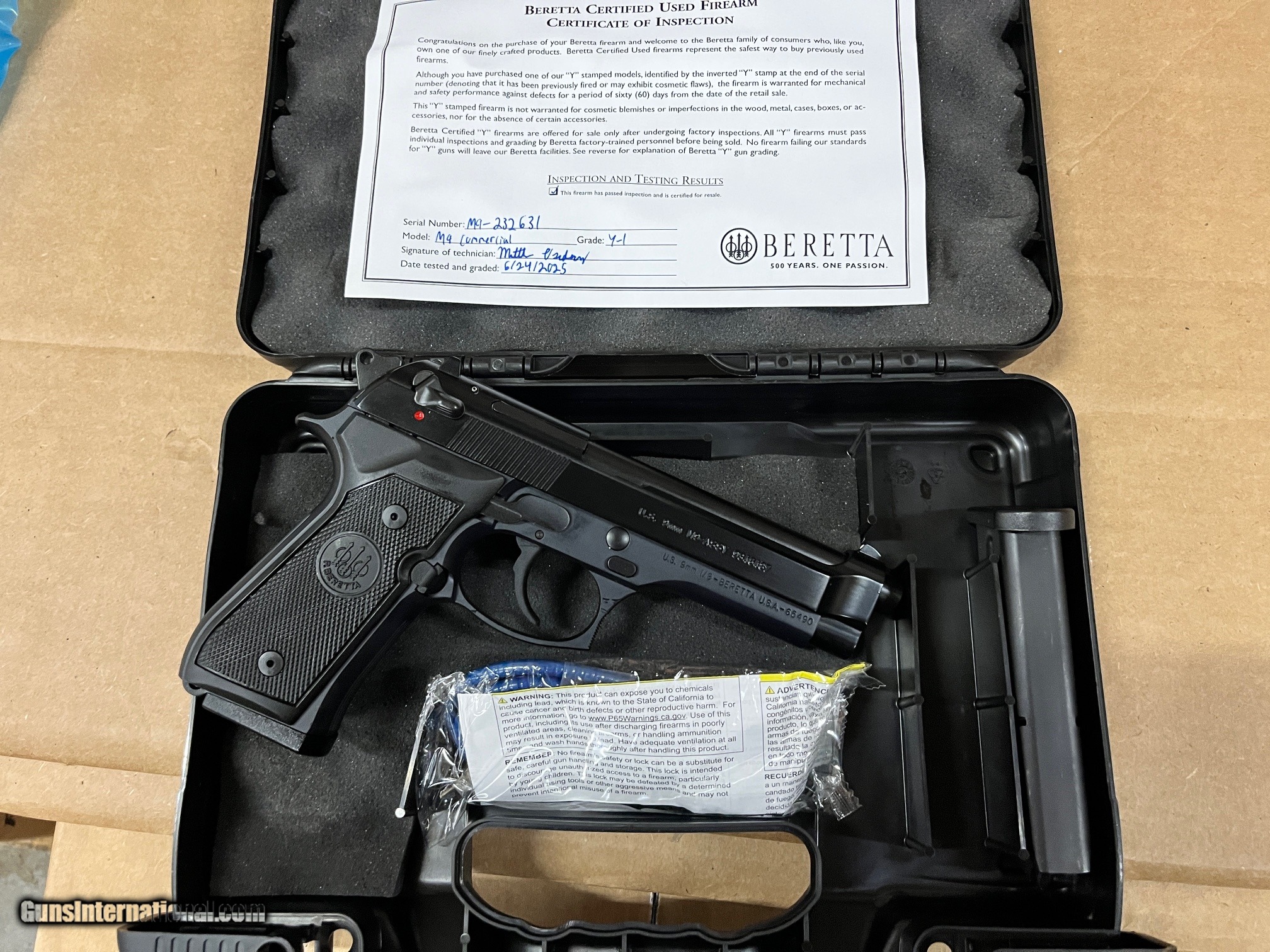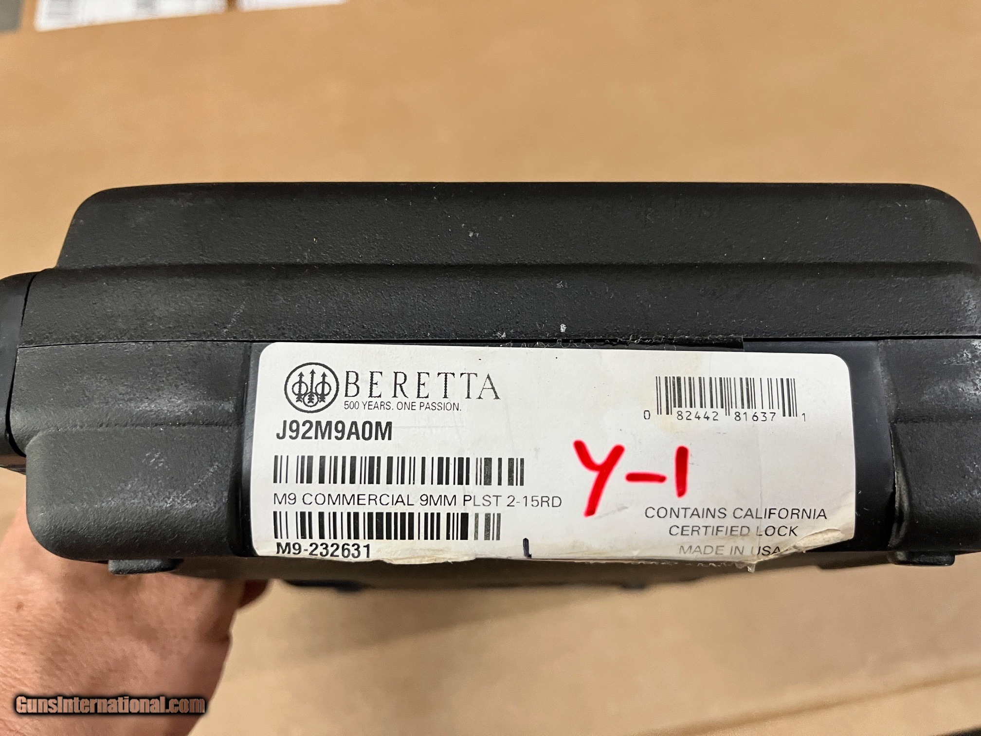 Beretta M9 Commercial 9mm – Certified Y1, CA Compliant, 2x15rd Mags