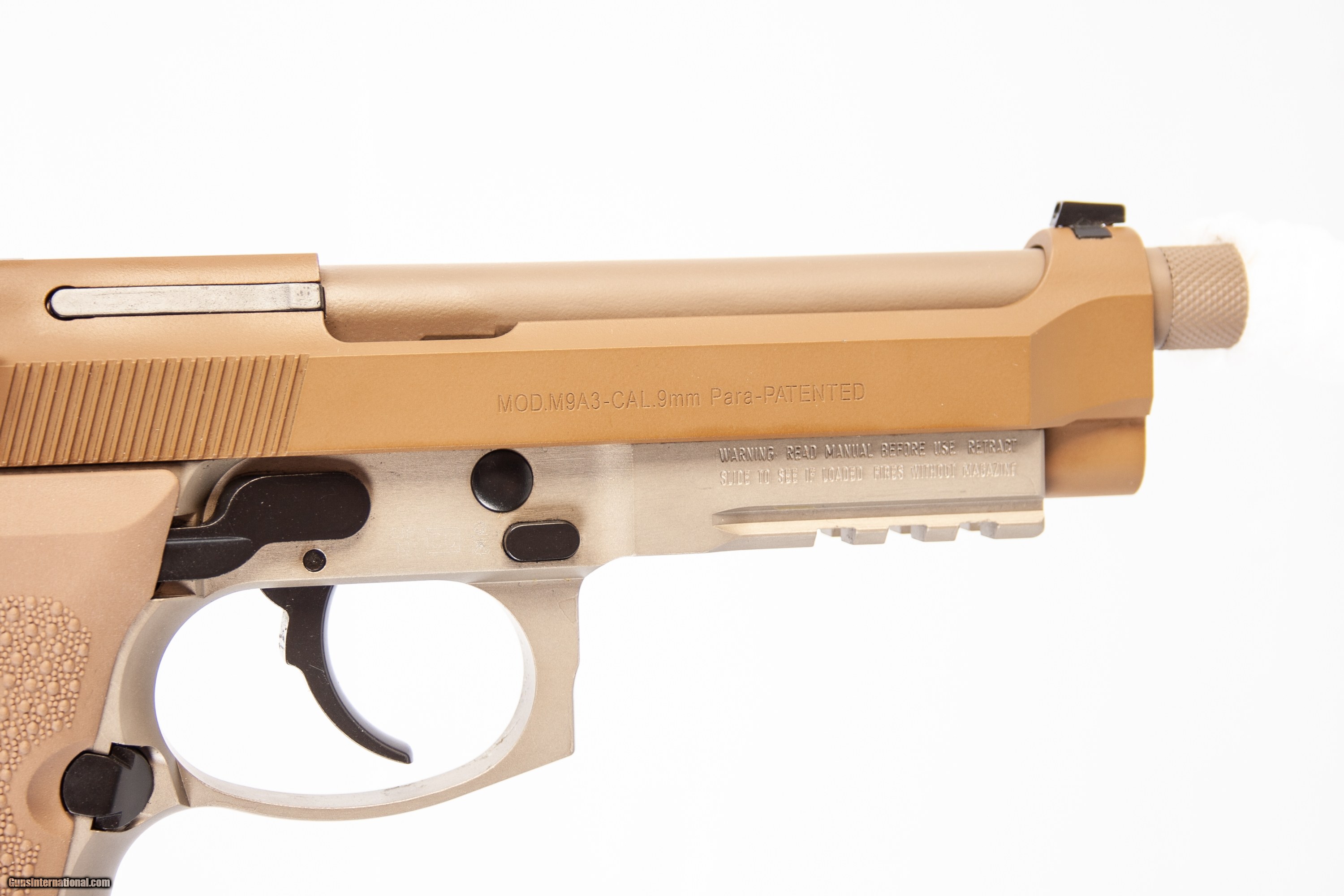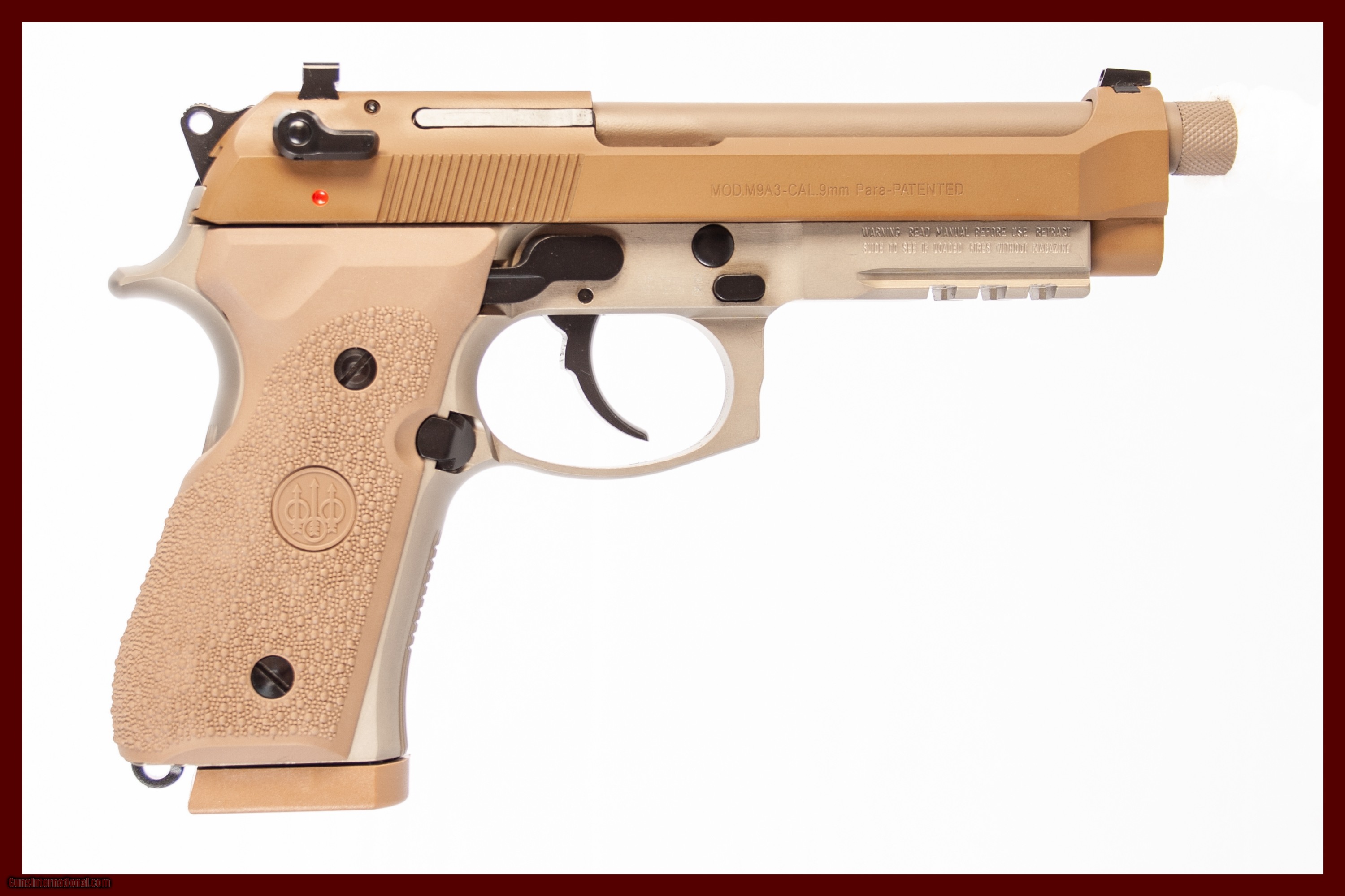 Beretta M9A3 chambered in 9mm with a 5 inch barrel bright bore and 2 extra magazines. This gun is in excellent condition and is covered by Dury's Lifetime Warranty.
