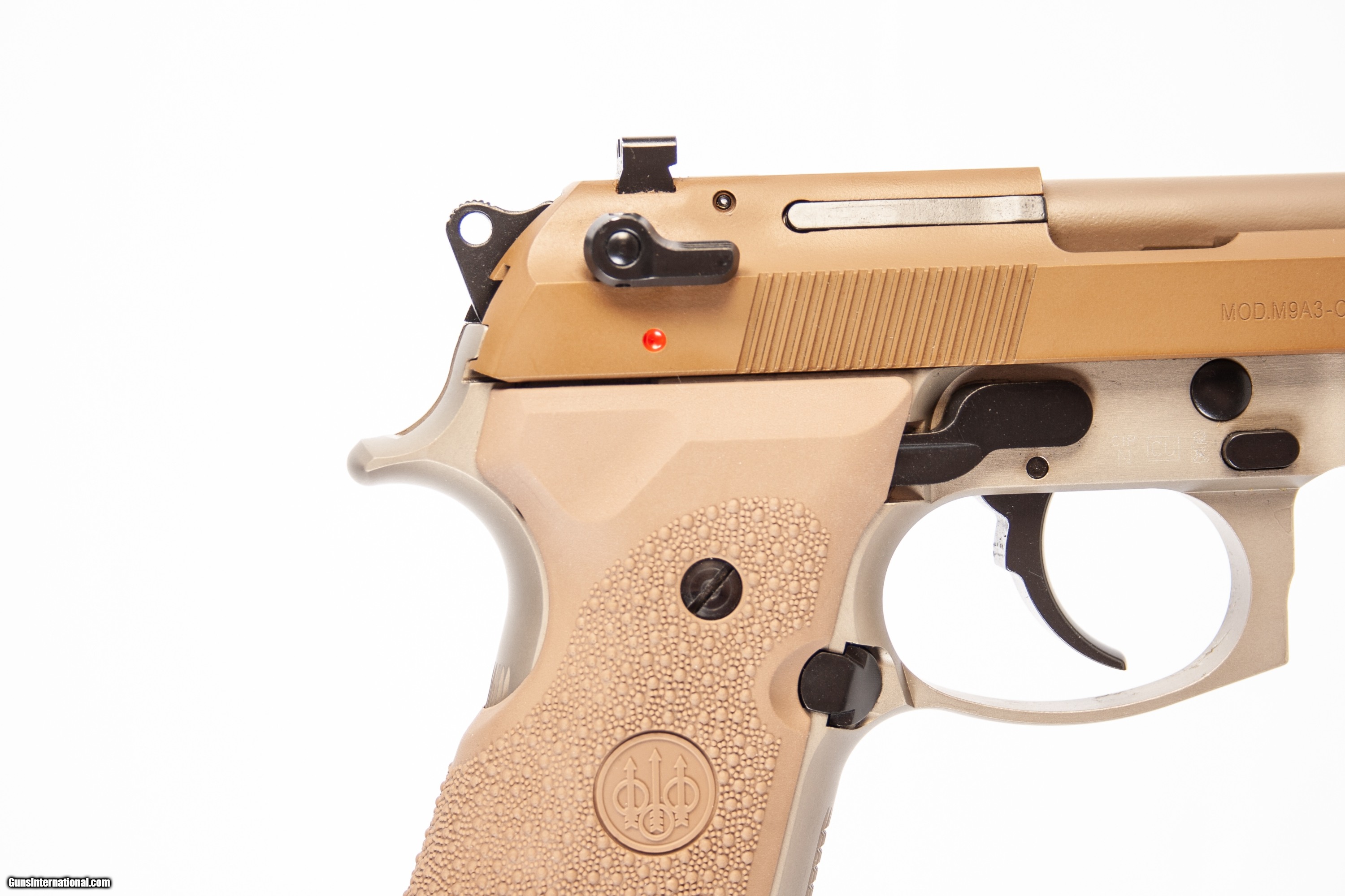 Description: Beretta M9A3 chambered in 9mm with a 5 inch barrel bright bore and 2 extra magazines. This gun is in excellent condition and is covered by Dury's Lifetime Warranty.