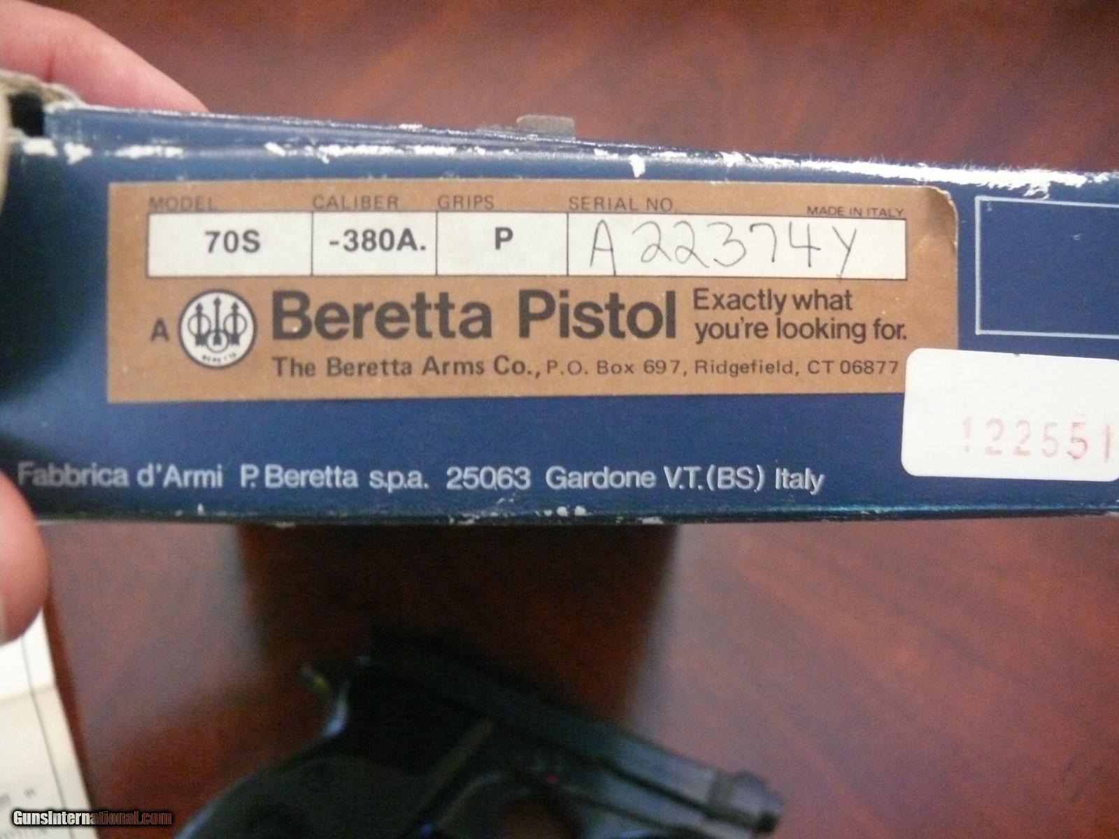 Description: Nice clean Beretta Mod 70 complete with box, paperwork and spare magazine. Credit cards add 3%, we offer a 3 day non-firing inspection period. Must ship to an FFL and shipping is $40. Thanks for looking. Strength and Honor! SOLD |