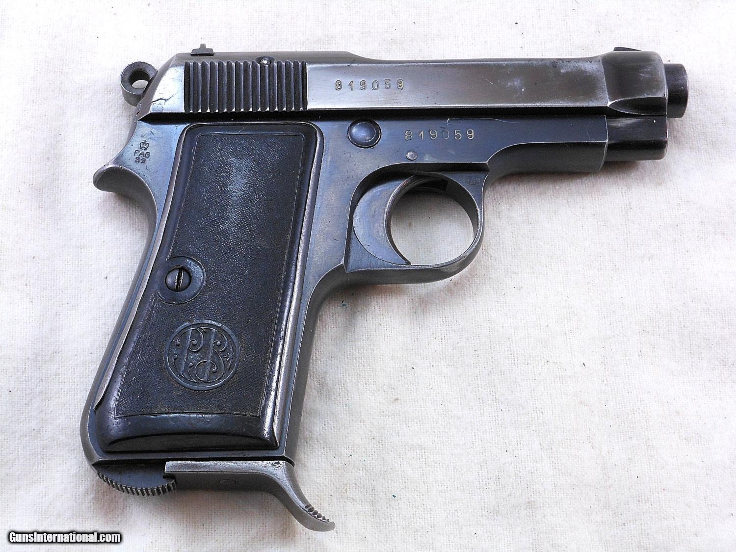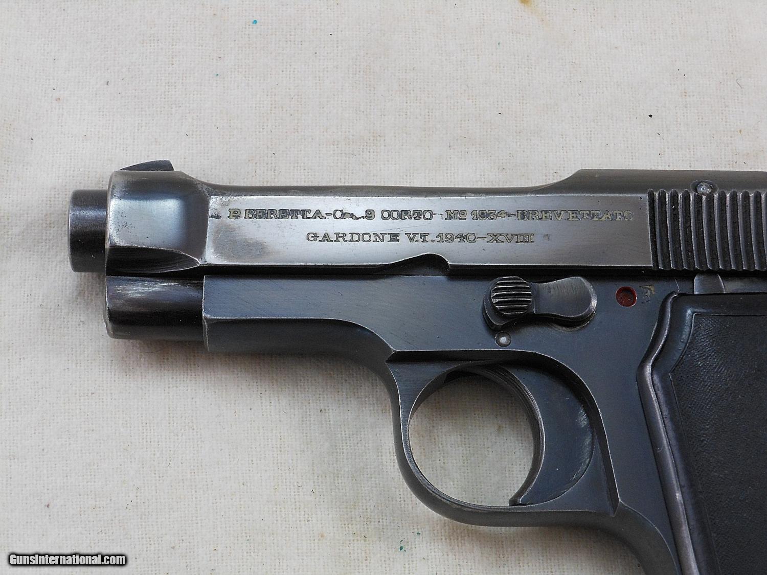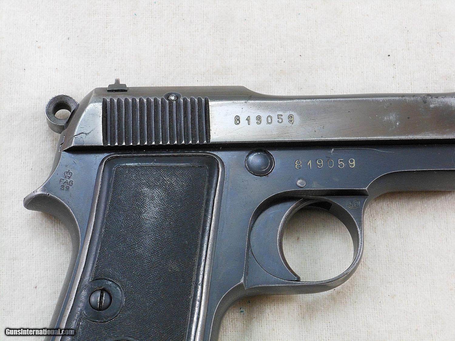 Description: Quality Consignments Wanted! This pistol was made in 1940. The serial number is 819059. It is chambered for the 380 A.C.P. It has the standard stamps that denote Italian army issue. This pistol is all matched serial numbers. The pistol has the correct two magazines as issued for this pistol. The bore shows service use with some frosting and wear. The pistol would rate a 94% overall condition. The holster is the correct green colored leather as issued to the Italian army. The holster is in very fine condition with no repairs or loose stiching. This is a nice original pistol rig for Italian military service. Search for hlvfineguns on google. Curio&Relic CAC Consn. F. No. 211 SOLD Curio/Relic: Yes Manufacturer: Bretta Model: 1934 Serial Number: 819059 Caliber Info: 380 A.C.P. Manufacture Date: 1940 |