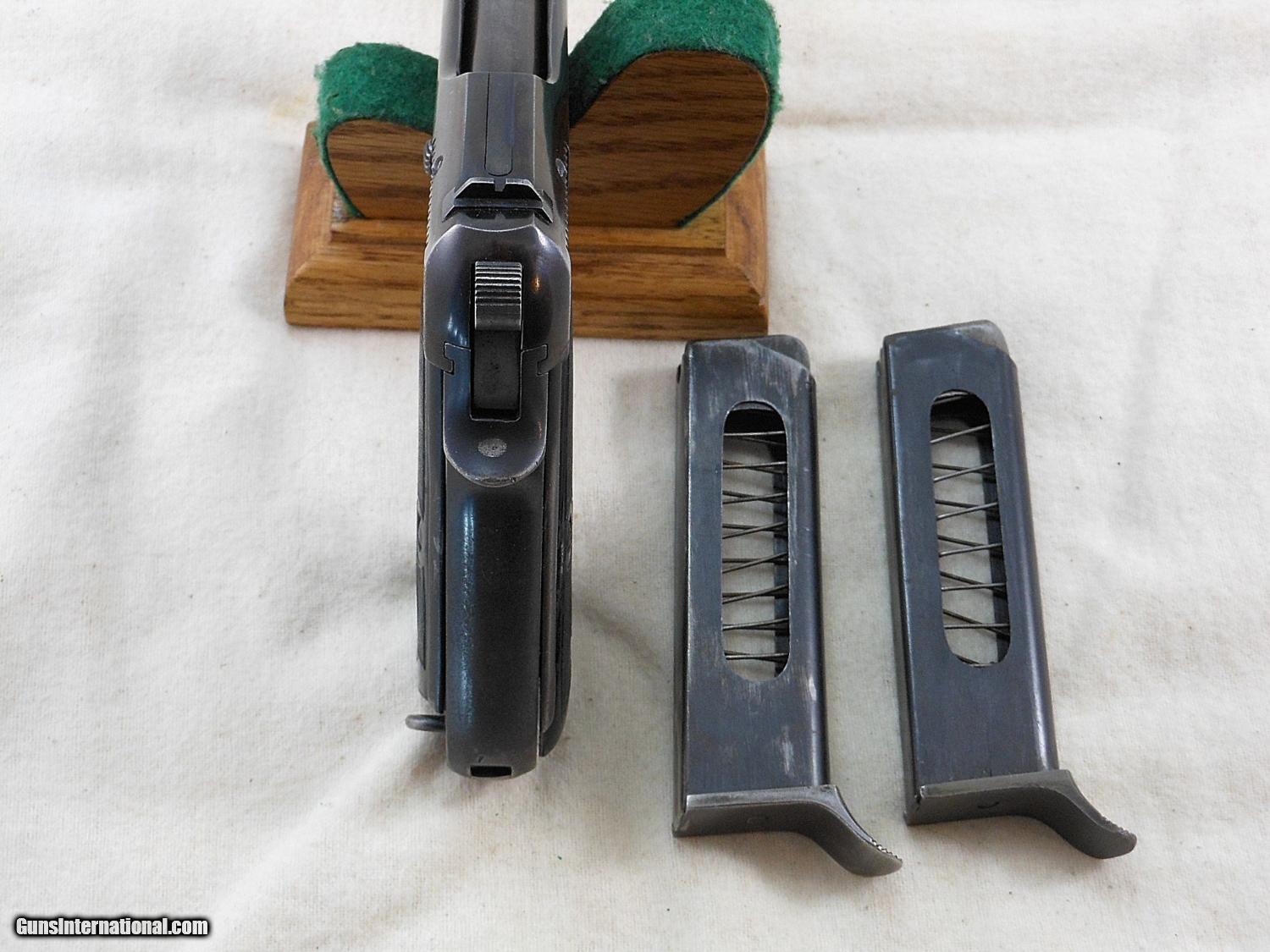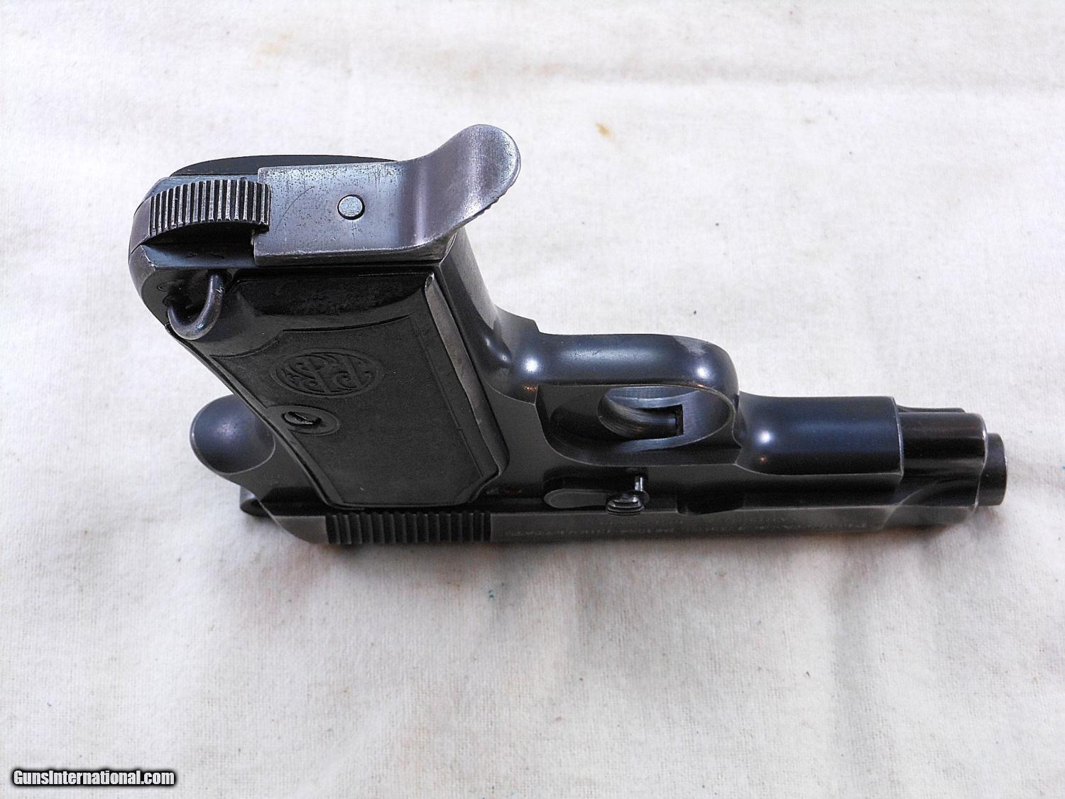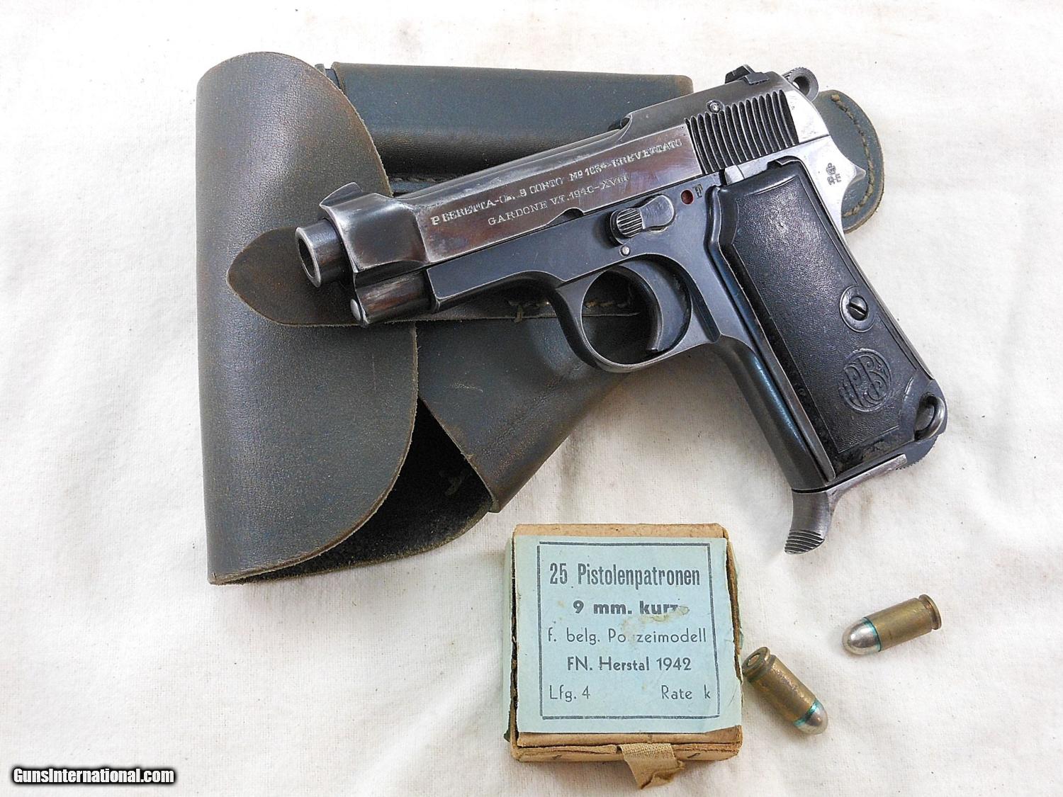 Description: Quality Consignments Wanted! This pistol was made in 1940. The serial number is 819059. It is chambered for the 380 A.C.P. It has the standard stamps that denote Italian army issue. This pistol is all matched serial numbers. The pistol has the correct two magazines as issued for this pistol. The bore shows service use with some frosting and wear. The pistol would rate a 94% overall condition. The holster is the correct green colored leather as issued to the Italian army. The holster is in very fine condition with no repairs or loose stiching. This is a nice original pistol rig for Italian military service. Search for hlvfineguns on google. Curio&Relic CAC Consn. F. No. 211 SOLD Curio/Relic: Yes Manufacturer: Bretta Model: 1934 Serial Number: 819059 Caliber Info: 380 A.C.P. Manufacture Date: 1940 |