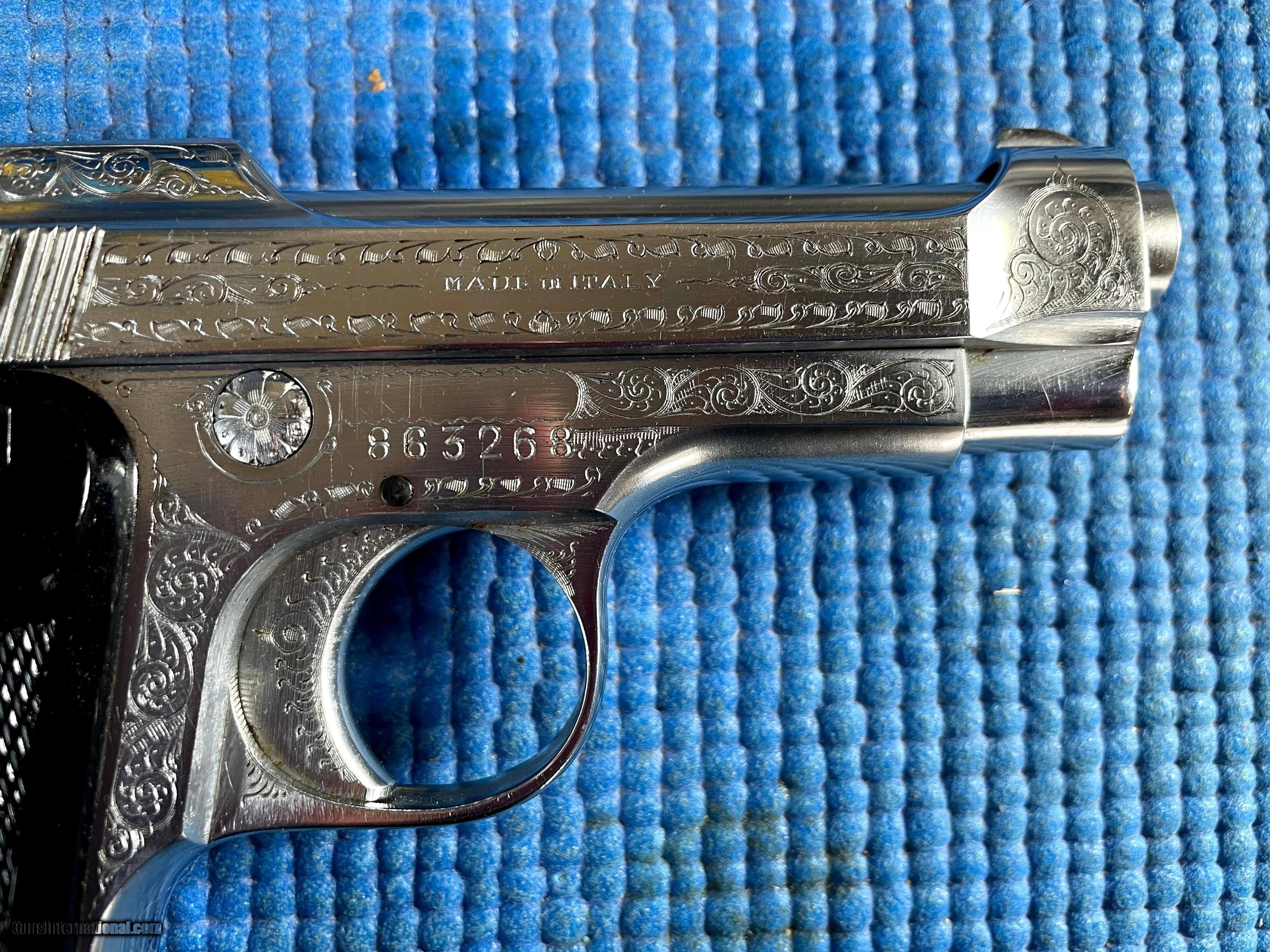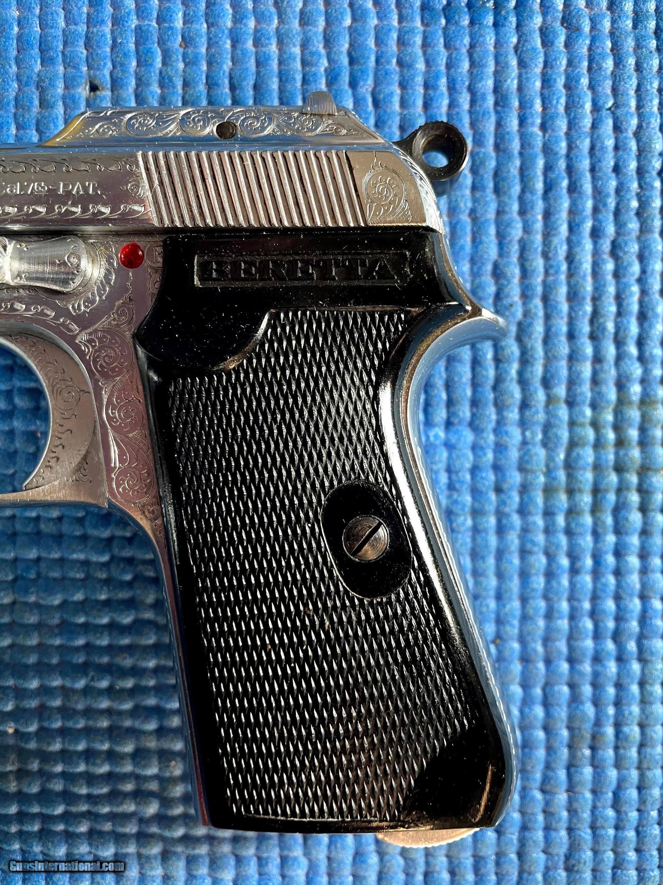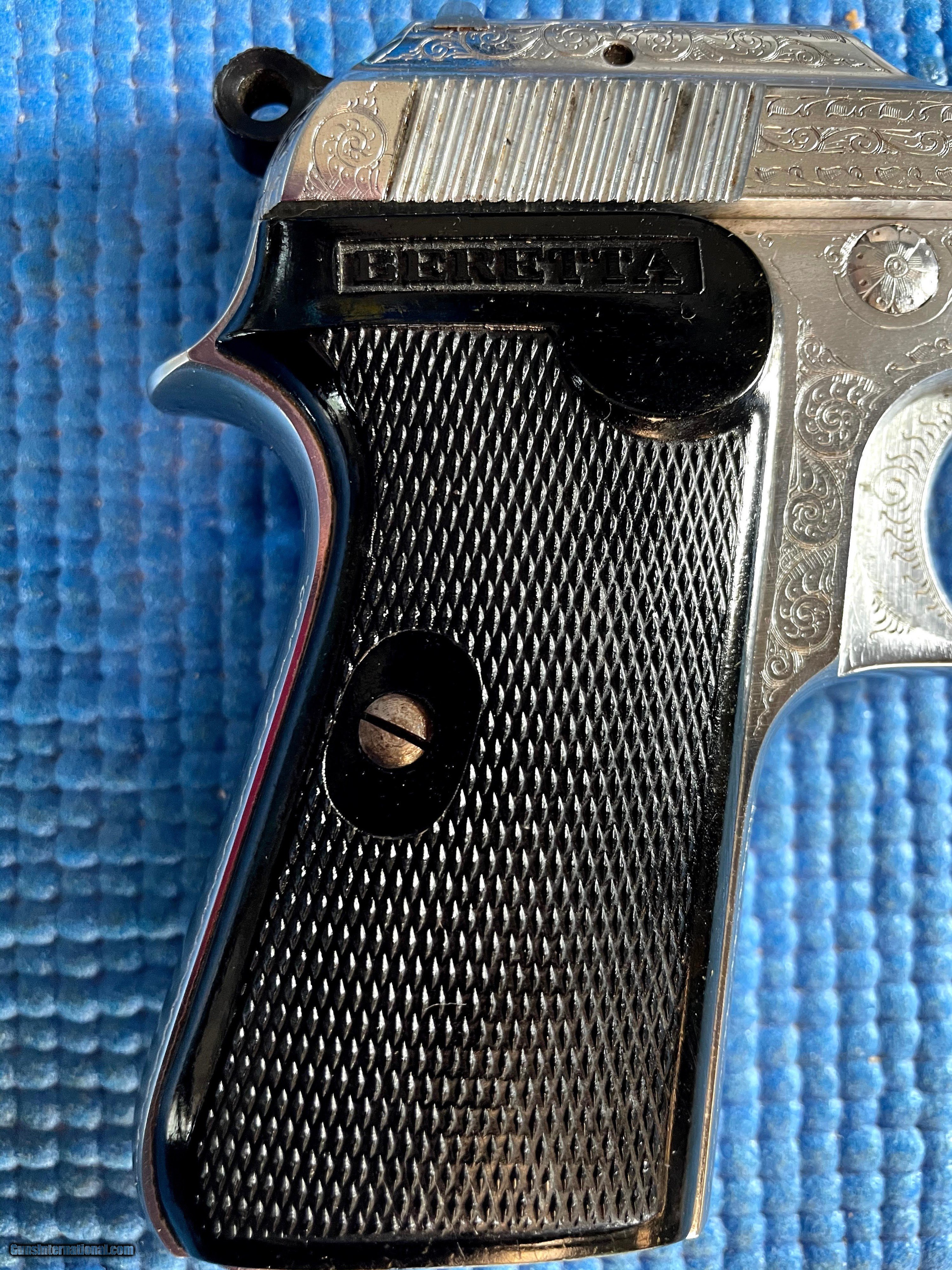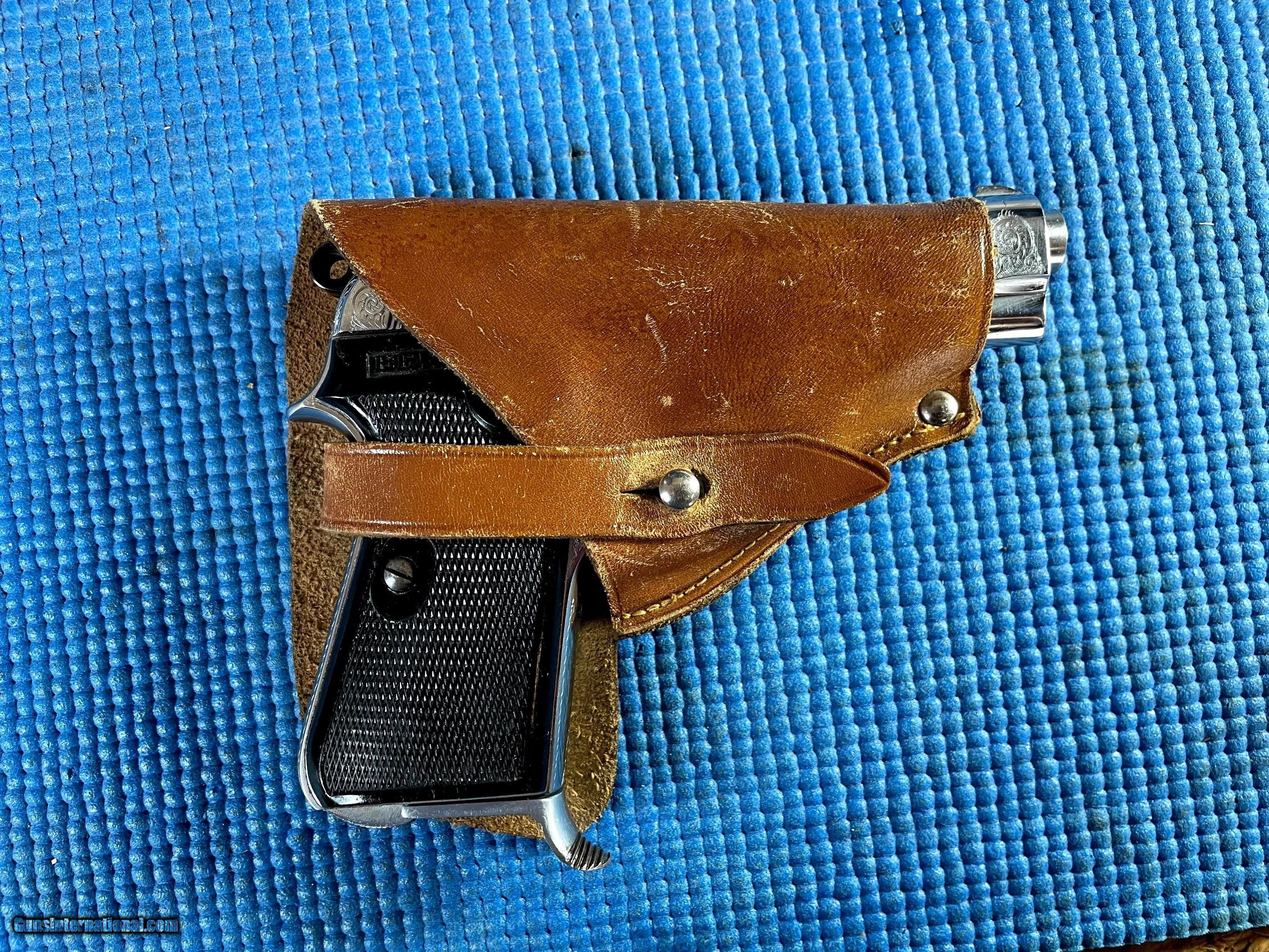 Beretta Model 1935 Nickel Engraved 32 ACP Made in 1954 With Period Holster