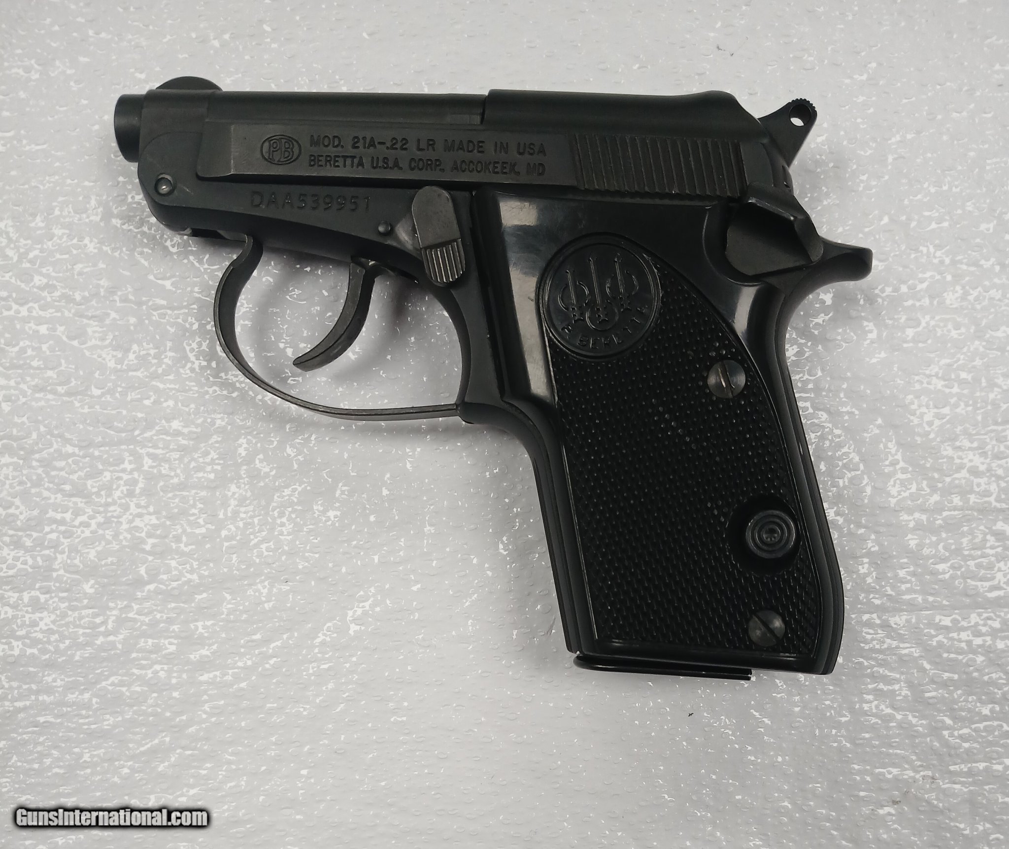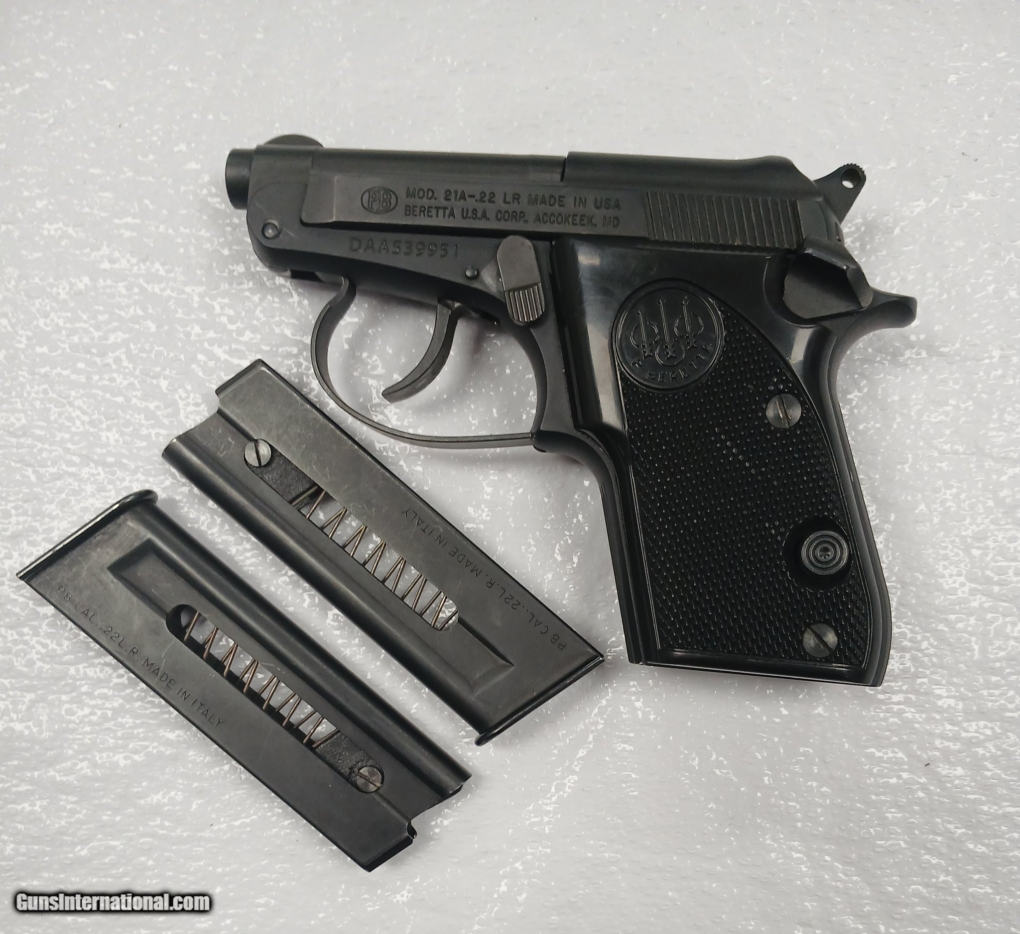 Description: Guns Listing ID: 1344009 Very good condition, comes with a case, holster and two magazines. Take a look at the pictures for reference! SOLD Manufacturer: BERETTA Model: MODEL 21A Caliber Info: .22 LR Condition: Used - Non-Certified Barrels: 2 BARREL |