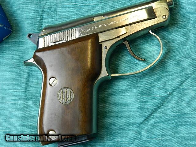 Description: This Beretta model 21A has an excellent bright bore, and the nickle metal finish is about 99%, with European Italian walnut grips in very good condition showing only minor wear. Gun works very good, and in made in the USA.This is the tip out barrel and is an easy clean for the bore. Comes with one factory mag. box and papers. Fewer nickle Beretta model 21 A in .25 acp were made than the blued model. We don’t have asite .I prefer money orders or a check. Item ships when funds come in. If you can only pay with a card let me know. I’m sorry I don’t list my phone number, did that for 30 days, never again.. I can’t talk on the phone all day…who will ship the guns? I’m just one person, and it’s very busy here! I do a brisk volume! I hope you like my wide selection of unusual guns, knives and gun parts. Shipping price determined by zip code. I try to keep the prices affordable, which means I make less money than most dealers. You won’t get altitude sickness with my prices! I consistently have the best selection of older guns If you BUY IT NOW you must still contact us for details buy it now doesn't end the sale, it just sends an email telling us you want to buy this gun. A phone call won’t secure a sale! Not home many times, the first buyer by email buys the gun !Thissite does not close down a sale when you do a BUY IT NOW like Ebay! I can get six buy it nows in an hour, first buyer to email gets the guns, others are in second place! Best to send another email . Sometimes not home to get calls. Some guns are required shipment to a gun dealer near you for a transfer to you when it arrives. With the widest selection of older guns at great prices, We don’t have a store, and sell on the internet only. SOLD |