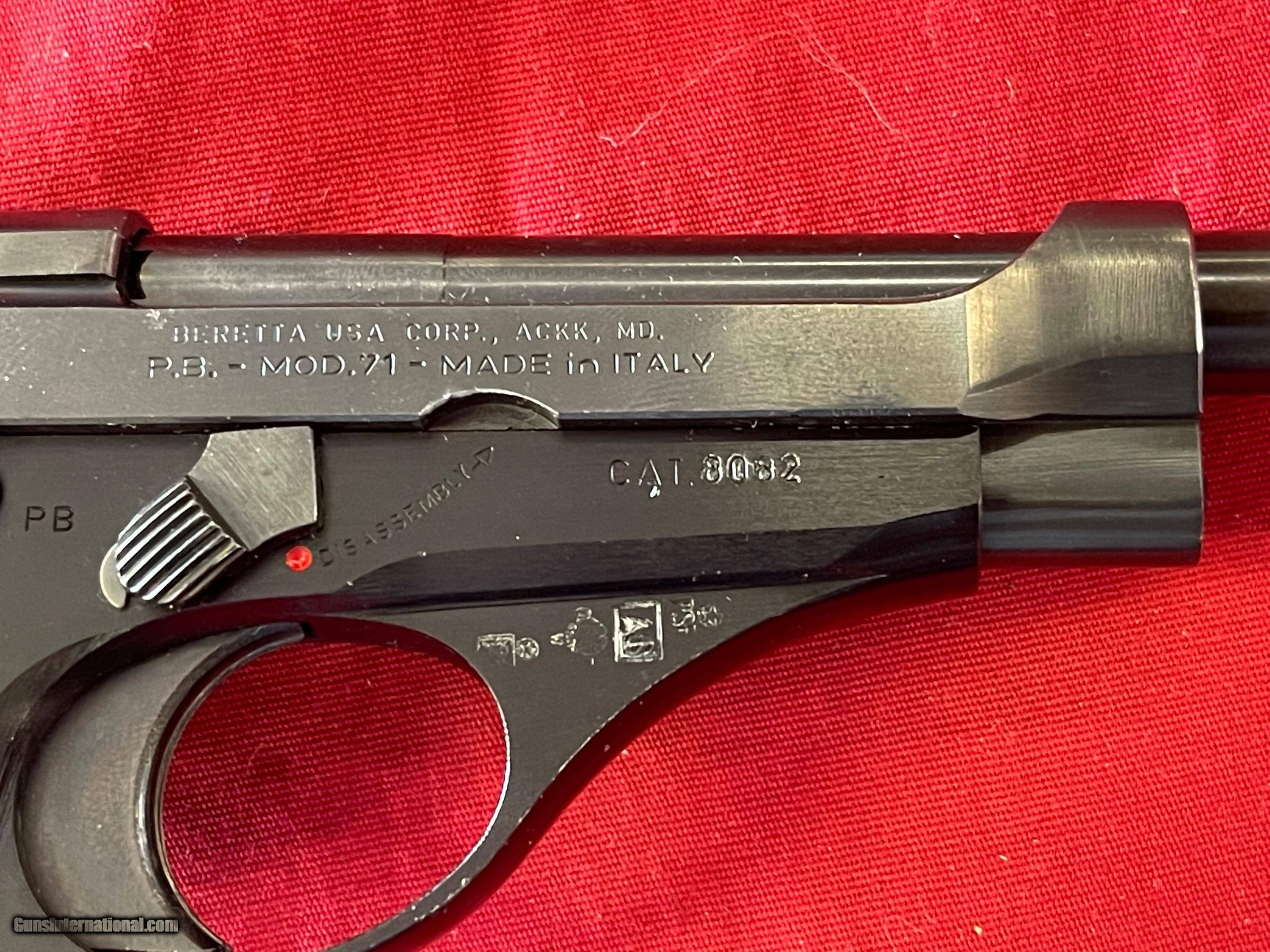 Description: Another great item from Gainesville Pawn! Up for sale is a Beretta model 71. 22 long rifle caliber, adjustable rear sights, 6 inch barrel, really nice condition with just some wear on the front grip strap. Please see attached photos. *Please be aware that all items are sold “AS IS”. Ask questions BEFORE placing a bid. Feel free to call us at our store (352) 240-6452 or email us at Gainesvillepawn(at)gmail(dot)com with ANY questions. We do not accept trades or offers through Guns International We only entertain trades and offers through our store. $35 shipping and handling. Insurance extra. We only accept USPS money orders and major credit cards for payment. 3% convenience fee for credit cards. WE collect Florida state sales tax for in state sales. Please be aware that this item is for sale in our store as well as the occasional gun show so it may be sold there at any time. If you would like to see this item in person please call the shop BEFORE coming to the store due to limited shelf space in store. We will not ship the item until you have your dealer/receiving store email us a signed copy of their FFL to gainesvillepawn(at)gmail(dot)com SOLD Handgun Caliber: .22 Long Rifle Manufacturer: Beretta Model: 71 Serial Number: B50278u Barrel Length: 6 inch Condition: Very good Metal Condition: Very good Wood Condition: Excellent Bore Condition: Excellent |