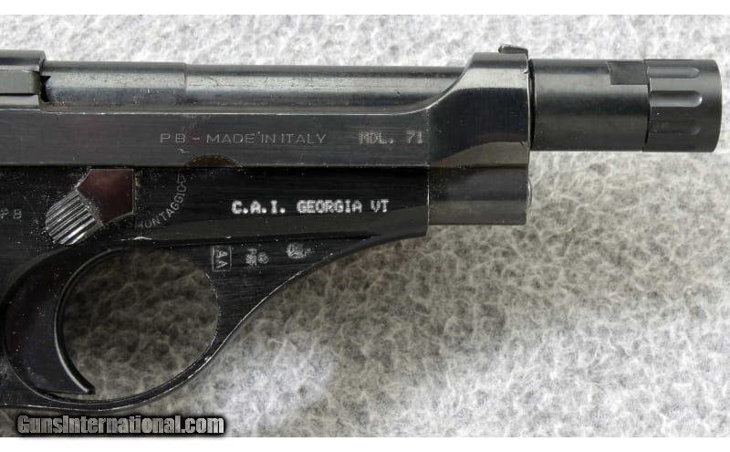 Description: The Beretta 71 Jaguar .22 Long Rifle Semi-auto pistol was introduced in 1958, and production ran through the mid-1980s. This pistol has a thumb safety. This is good pistol for plinking and informal target shooting, plus it is suppressor ready. Manufactured 1975. .22 Long Rifle SOLD Metal Condition: Very good with some silvering on the sharp edges Bore Condition: Very good Barrels: 3.5 inch threaded barrel Triggers: Single action Weight: 18 oz. Sights: Square notch rear sight with blade front Item Location: Lehi, UT |
