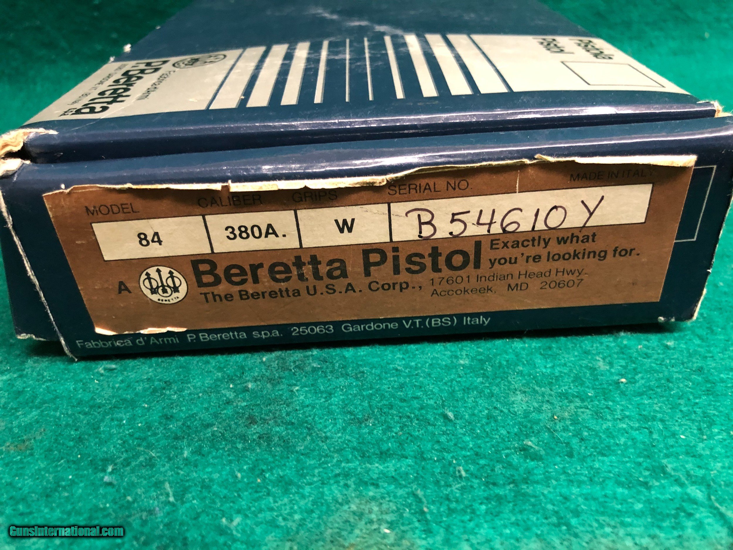 Description: BERETTA MODEL 84 .380 ACP PISTOL WITH BLUE FINISH. THIS PISTOL IS IN EXCELLENT CONDITION AND COME WITH 2 FACTORY 13 ROUND MAGAZINES, ORIGINAL BOX AND PAPERS. CAN NOT BE SOLD IN CA SHIPPING IS $35.00. SOLD Handgun Caliber: .380 ACP (9x17mm Browning Short) Manufacturer: BERETTA Model: 84 Condition: GREAT |
