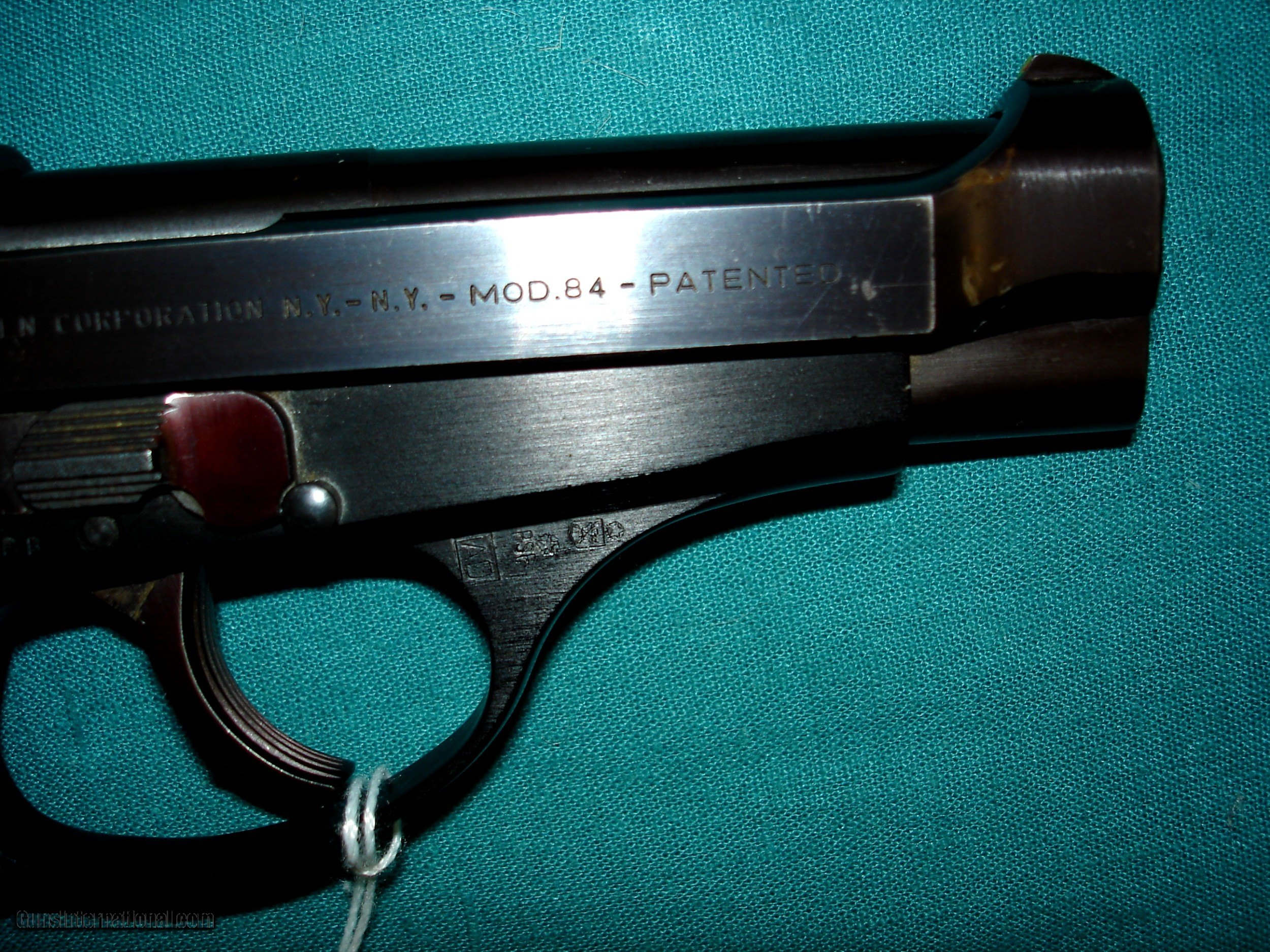 Description: Beretta Model 84 Cheetah. .380 ACP. Serial number B14408Y. Very good condition. A few cosmetic issues, one on top right side of slide.Some slight wear on high spots on slide. SOLD |