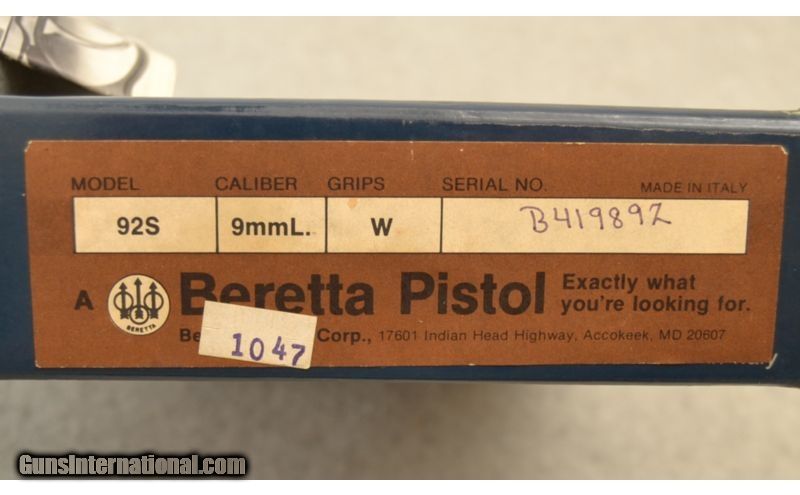 Beretta Model 92 S 9 mm Parabellum 5" Barrel