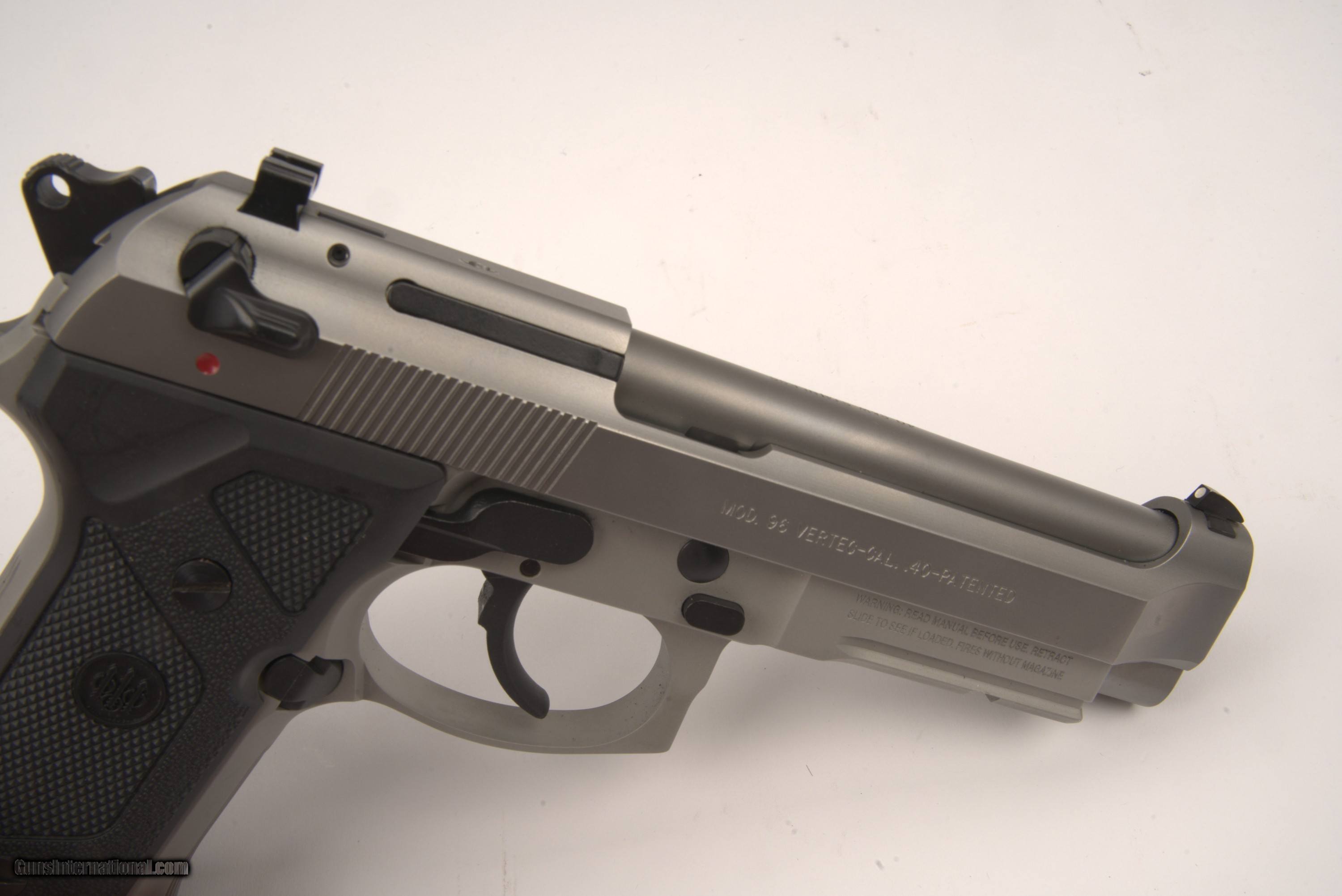 Description: -Manufacturer: Beretta -Model: Model 96 Vertec -Serial Number: BER431594 -USED -Gauge/Caliber: .40CAL -Year Manufactured: 2005 -Barrel Length: 4 3/4" -Trigger Type: Single -Stock Type: Pistol Grip -Receiver Finish: Stainless -Weight: 1lb 14oz -Country of Origin: Italy -Action: Semi-Auto -Stock/Forend Finish Originality: Original -Receiver Finish Originality: Original -Barrel Finish Originality: Original -Bore Condition: Excellent -Items the Firearm comes with: Leather holster -Current Damages Explained: No damages. Minor wear from very little use. -Barrel Damages: Normal wear from minor use at end of barrel. -Dents or Deep Gouges: NONE -Rust or Corrosion: NONE -Firearm Condition: Very Good: In perfect working condition, no appreciable wear on working surfaces, no corrosion or pitting, only minor surface dents or scratches. This is a USED GUN and the actual photos of the gun you will receive. Please feel free to contact us if you would like to make an offer on this gun. Not the model you are looking for? Give us a call or email today and we will be happy to help find the right gun for you! If you contact us directly, we offer a 3% Cash or Check Discount, do not charge shipping on orders over $3,000, and also do not charge out of state taxes. There will be a $40 shipping charge for any firearms under $3,000. SOLD Handgun Caliber: .40 Smith & Wesson (.40 Auto, 10 x 21 mm) Manufacturer: Beretta Model: Model 96 Vertec Serial Number: BER431594 Barrel Length: 4 3/4 Condition: USED |
