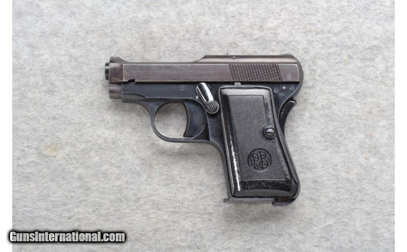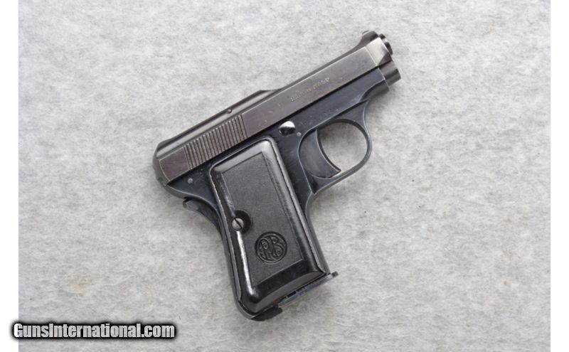 Description: SOLD Manufacturer: Made in Italy. Caliber Info: 6.35 Cal. Chambers: 6 shot magazine. Metal Condition: Good. Shows some age, use and wear. Bore Condition: Excellent. Barrels: 2.25 inches. Stock: Lightly textured hard black plastic with PB logo. Weight: 10 oz. Sights: Blade front. Integral notch rear. Item Location: Richfield, WI |