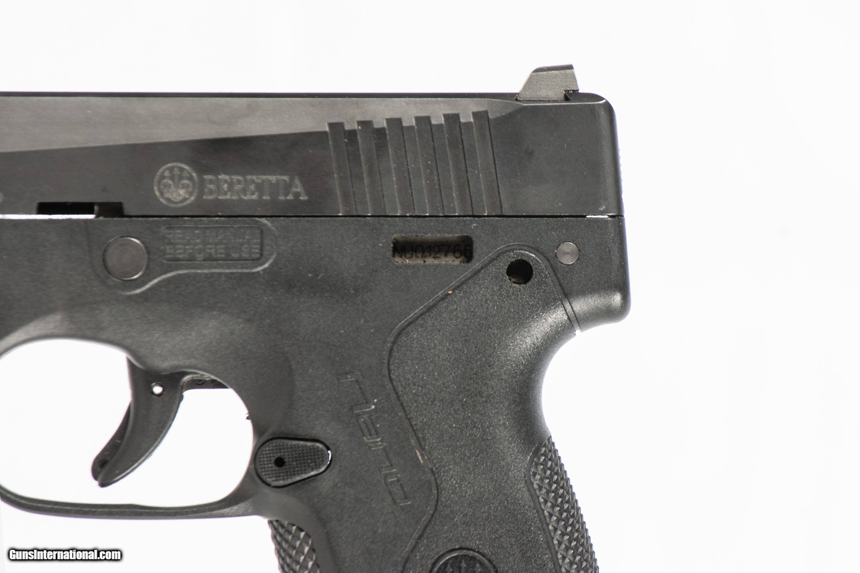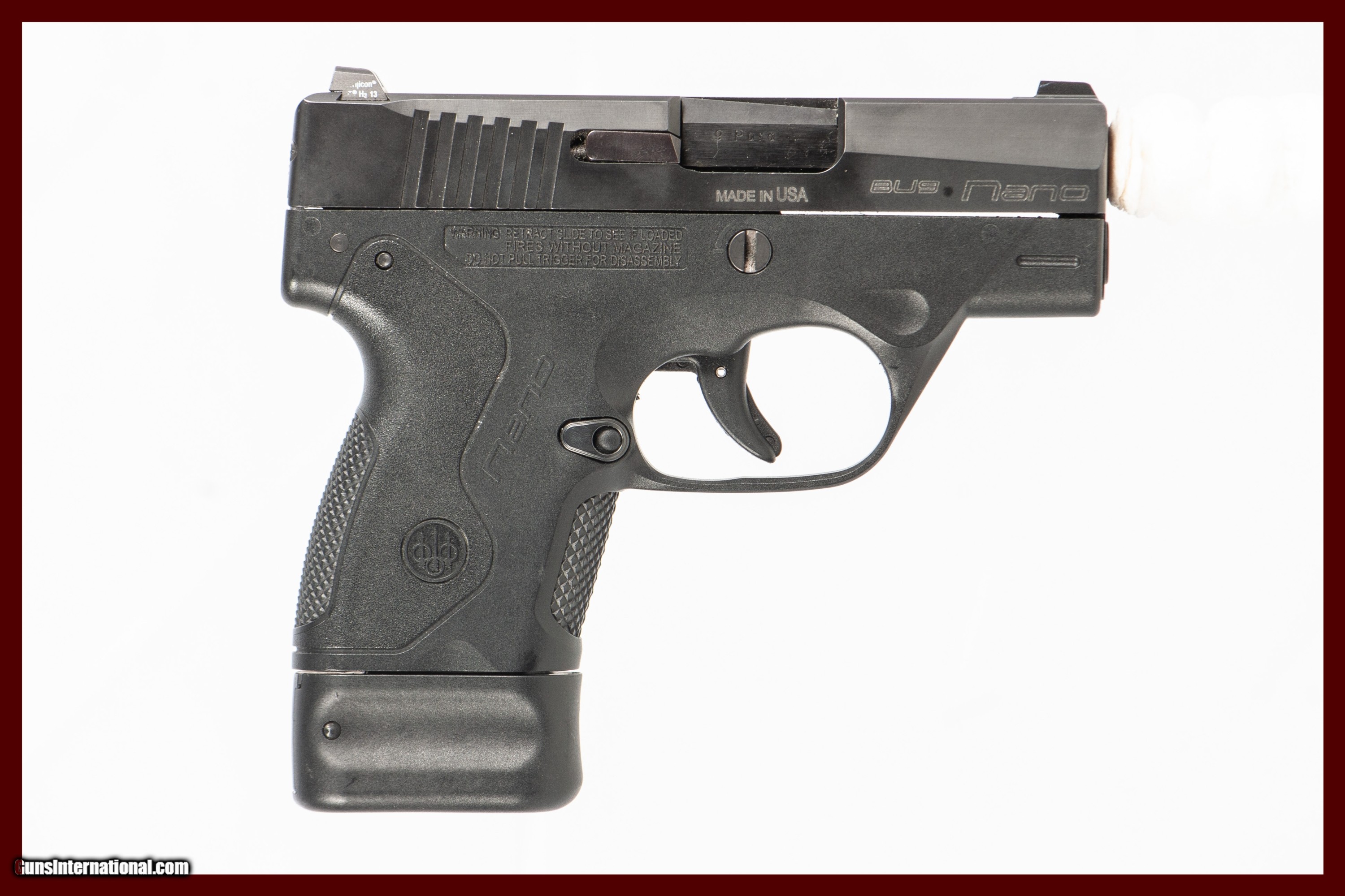 Description: Beretta Nano chambered in 9 mm with a 3 inch barrel bright & shiny bore 2 extra magazines and box. This firearm is in excellent condition and is covered by Dury's Lifetime Warranty.