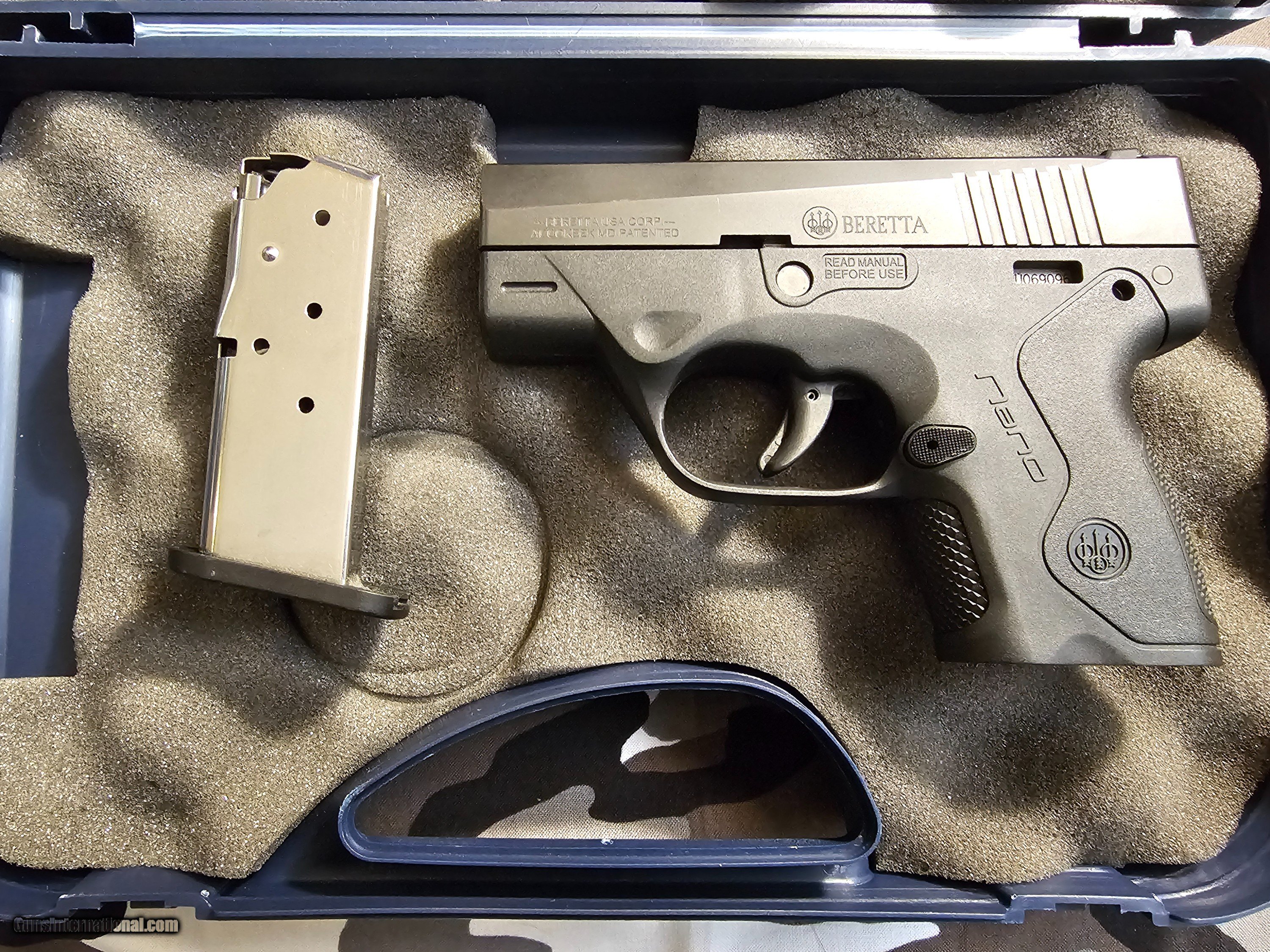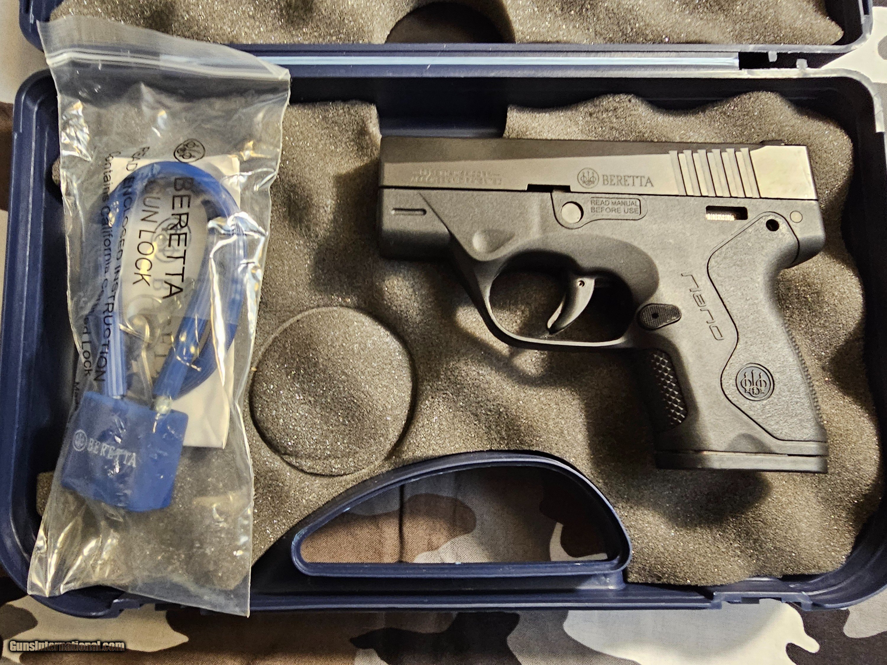 Description: Beretta 9MM Nano in like new condition. It comes in the factory case and box and has a gun lock included. There are no scratches or other markes on this gun. It has a 3 inch barrel with a rear serrated slide. A blade front sight and notch rear sight with white sight dots. The grip is a textured black polymer. 9mm Parabellum SOLD Manufacturer: Beretta Model: Nano Serial Number: NU069096 Barrel Length: 3 Condition: Excellent Metal Condition: Excellent Bore Condition: Excellent / Clean Sights: 3 Dot |