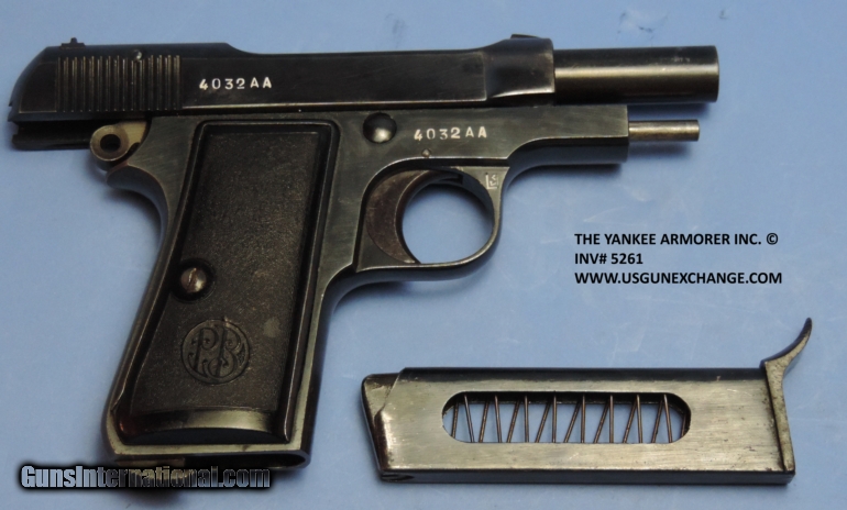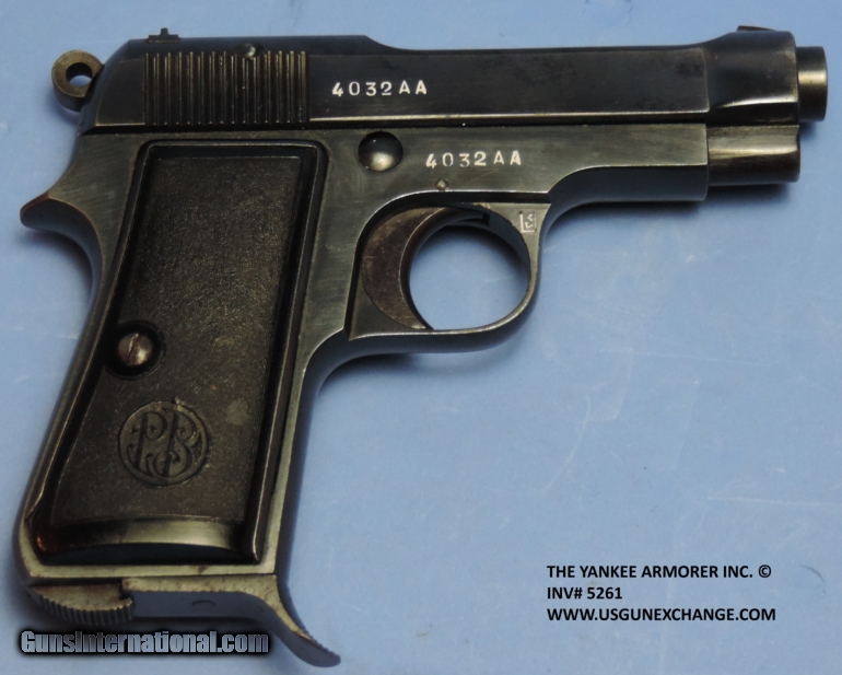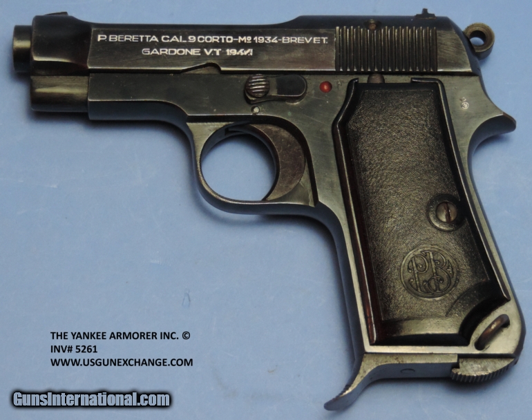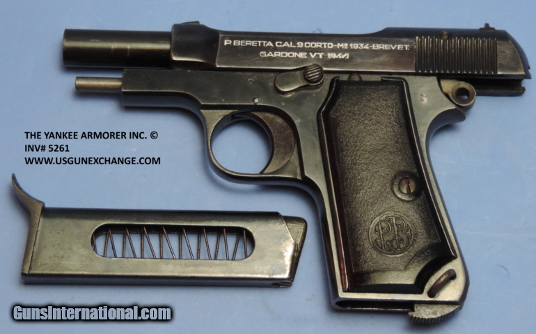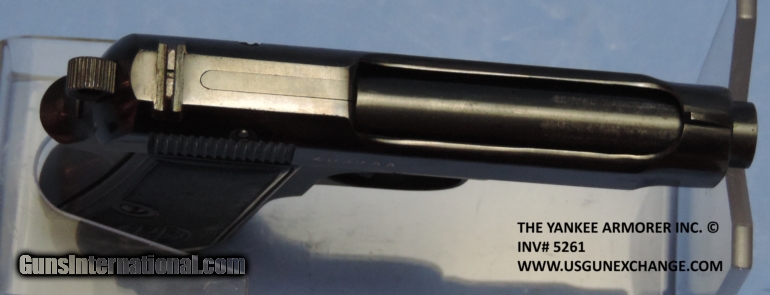 Description: Inv. 5261 Beretta (Nazi Contract) Model 1934, Caliber 380 ACP, Serial Number 40XX AA, Inv 5261. For those not familiar with Beretta WWII production. All serial numbers with the suffix AA are Nazi Contract guns. These are quite scarce particularly in this condition. A truly 97-98%original high polish commercial finish. The little finish loss there is due to sharp edge silvering and that's about it. No pits, flakes, or even pin pricks. The grip straps have not even grayed slightly. All numbers match. The gun is very tight and seems to function properly. The feed ramp and bolt face are really spotless. The black plastic metal backed grips show no evidence of use. The bore is outstanding and it shows almost no evidence of use. Bright, sharp and crisp. The gun comes with one proper early finger grip magazine. You'll be proud to add this one to your collection. $1095. A correct Italian Army holster as shown is available with the purchase of the gun for $195. The buyer must be familiar with all the laws governing the purchase and the ownership of firearms in their own city and state. The Yankee Armorer, Inc is not responsible for any failure to comply with or observe these laws. The Yankee Armorer, Inc will only ship after full payment and receipt of all required documents. Shipping: Add $35.00 for handguns, $45.00 for long guns. New Jersey buyers are subject to a 7% sales tax. The Yankee Armorer, Inc offers a 3 day inspection period with full refund upon return of intact firearm and in the original condition. The Yankee Armorer, Inc offers a no interest lay away program - 25% down; 25% in 30 days; 25% in 60 days; and full payment in 90 days. Any violation of this policy is subject to restocking and forfeiture of all payments. Any variation from this policy must be agreed to in advance. Unshipped Cancelled sales are subject to a 20% restocking fee. We accept most major credit cards. Prices shown are Discounted 3% for Cash or Check. Be advised that all firearms sold by The Yankee Armorer, Inc. or the Gun Exchange, LLC (SELLER) are sold as collector’s items. They have not been fired or tested for safety and must be examined by a license gunsmith prior to use. By purchasing any item from the (SELLER), you are agreeing to hold the (SELLER) free from any damages or lawsuits of any nature. Any item left for transfer or storage will be charged to $25.00 per month, per item from the day of its receipt. Unless discussed with management prior to our receipt. Store hours 10:00 am to 5:00pm Tuesday -Saturday. It's always best to call for appointment. Store 201-512-0002, cell 201-512-5768. SOLD Curio/Relic: Yes |