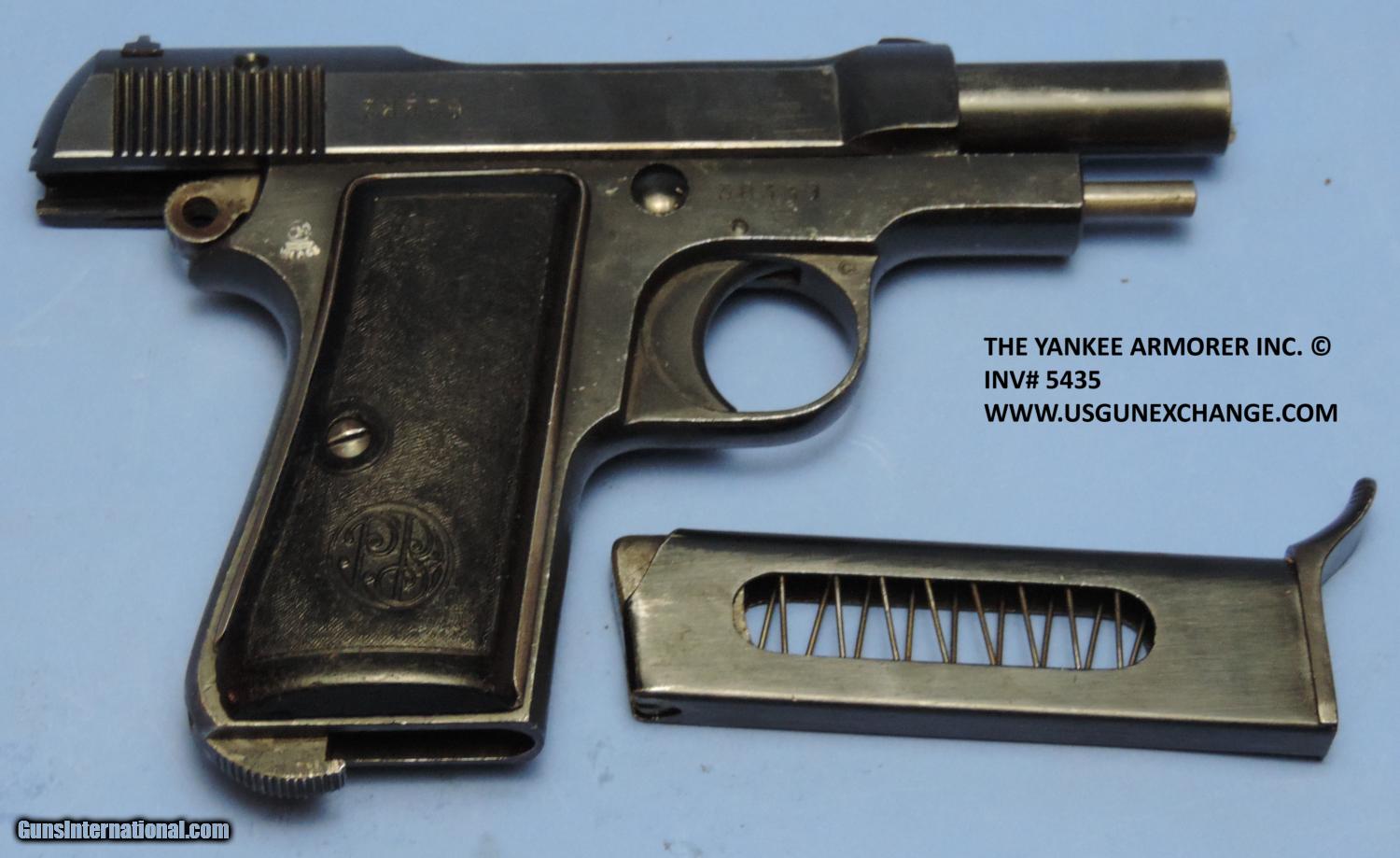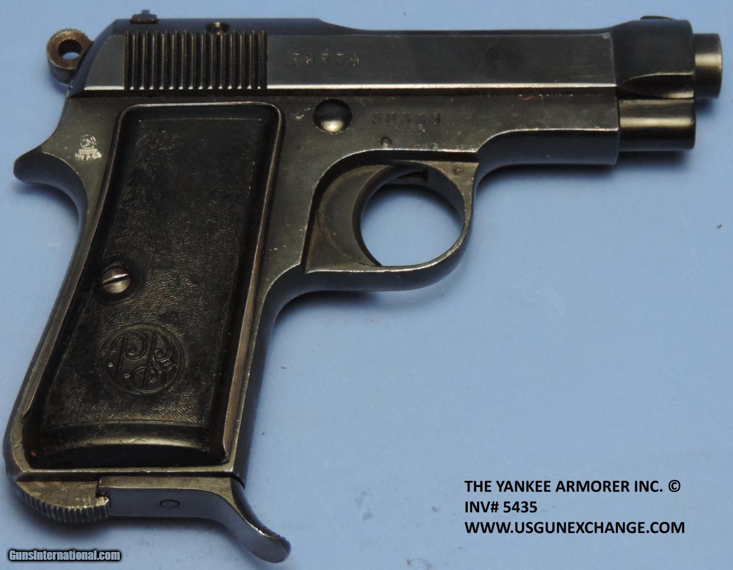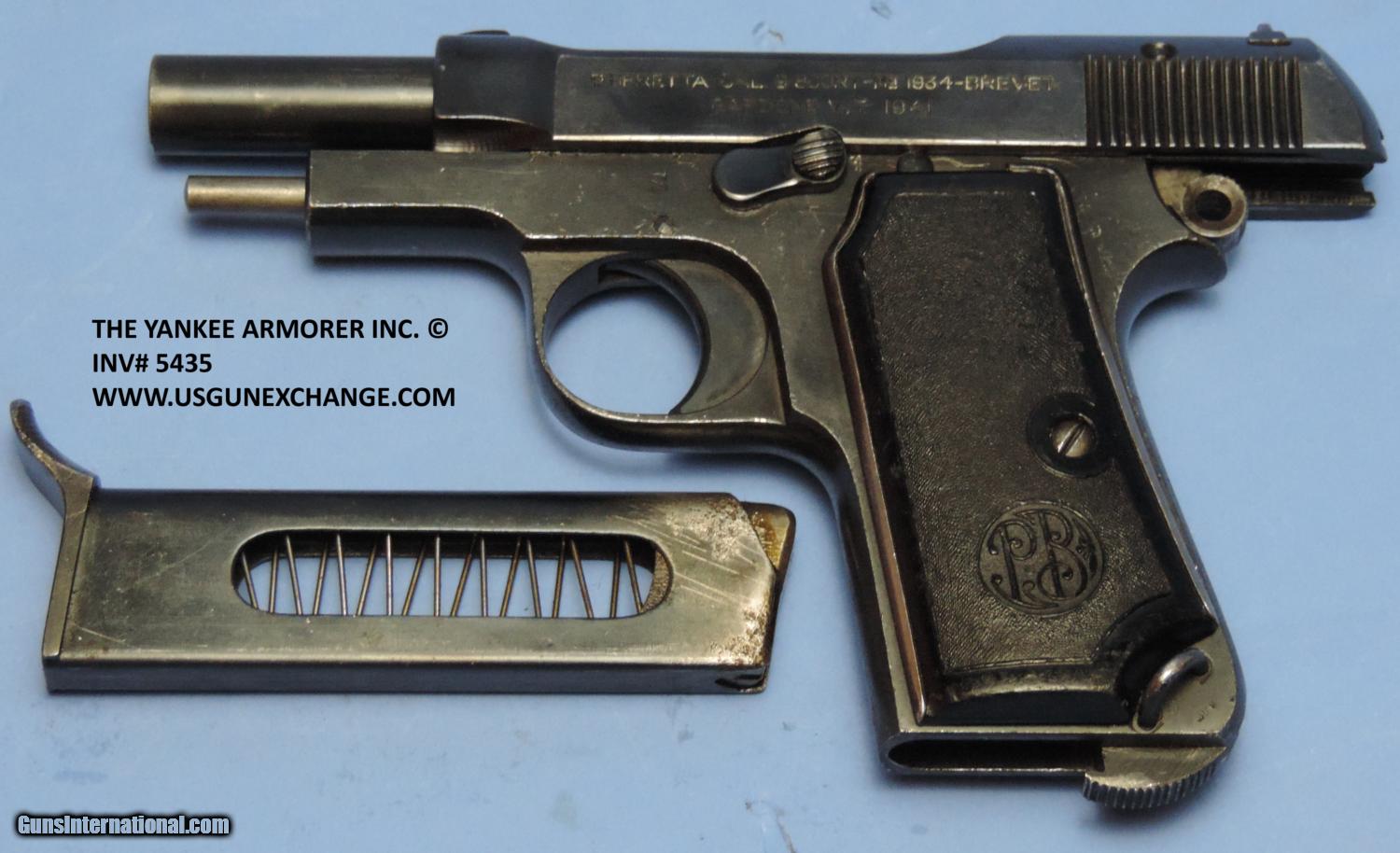 Description: Inv. 5435 Beretta, (Romanian Contract with Nazi Waffenamt). Mdl. 1934 Cal..380, Dated 1941. Very rare and with great condition are only words that describe this gun. Be advised there are are no import marks on this gun. It must have been a bring back. This was originally part of a contract for the Romanians The entire contract was not delivered before the Nazis took over. This gun may have already been delivered by the time the Nazis took over Romania or possibly part of the contract that went undelivered and was turned over to the Nazis directly from Beretta. The slide is are marked 9mm "Scurt" which is Romanian for "Short' and the serial number is correct for the Romanian contract. This gun retains about 97-98% original high polish commercial blue. There is the usual sharp edge and muzzle silvering and a few scattered pinpricks. There is virtually no rust or pits to be found. The barrel, slide, and frame all match which is correct for the gun. The grips straps show almost no toning to gray. The right rear tang has a CM in circle, we think was the Romanian inspector's mark of the period. Then below that is a Nazi Waffenamt, a stick Eagle/WaA63. WaA/63 was indeed a Nazi inspector originally stationed at Waffenfabrik Brunn. The plastic grips and metal base plates show no wear, they are devoid of any splits or chips. The bolt face and feed ramps show almost no use. The bore like the rest of the gun shows almost no wear. The rifling is extremely sharp and bright with only the slightest hint of graying. The gun comes with one correct early finger grip magazine. You won't find another, let alone in this condition. Definitely a rarity from WW II.....$1495. To purchase this firearm or if you want to request more information contact us at: Email ckgunsymail Phone 201-512-0002 Cell 201-575-6838 FAX 201-215-4759 We accept most major credit cards. Prices shown are Discounted 3% for Cash or Check. The buyer must be familiar with all the laws governing the purchase and the ownership of firearms in their own city and state. The Yankee Armorer, Inc is not responsible for any failure to comply with or observe these laws. The Yankee Armorer, Inc will only ship after full payment and receipt of all required documents. Shipping: Add $35.00 for handguns, $45.00 for long guns. New Jersey buyers are subject to a 7% sales tax. The Yankee Armorer, Inc offers a 3 day inspection period with full refund upon return of intact firearm and in the original condition. The Yankee Armorer, Inc offers a no interest lay away program - 25% down; 25% in 30 days; 25% in 60 days; and full payment in 90 days. Any violation of this policy is subject to restocking and forfeiture of all payments. Any variation from this policy must be agreed to in advance. Unshipped Cancelled sales are subject to a 20% restocking fee. Be advised that all firearms sold by The Yankee Armorer, Inc. or the Gun Exchange, LLC (SELLER) are sold as collector’s items. They have not been fired or tested for safety and must be examined by a license gunsmith prior to use. By purchasing any item from the (SELLER), you are agreeing to hold the (SELLER) free from any damages or lawsuits of any nature. Any item left for transfer or storage will be charged to $25.00 per month, per item from the day of its receipt. Any variation from this policy must be agreed to in advance. Store hours 10:00 am to 5:00 pm Tuesday -Saturday. It's always best to call for appointment. Store 201-512-0002, cell 201-575-6838. SOLD Curio/Relic: Yes |